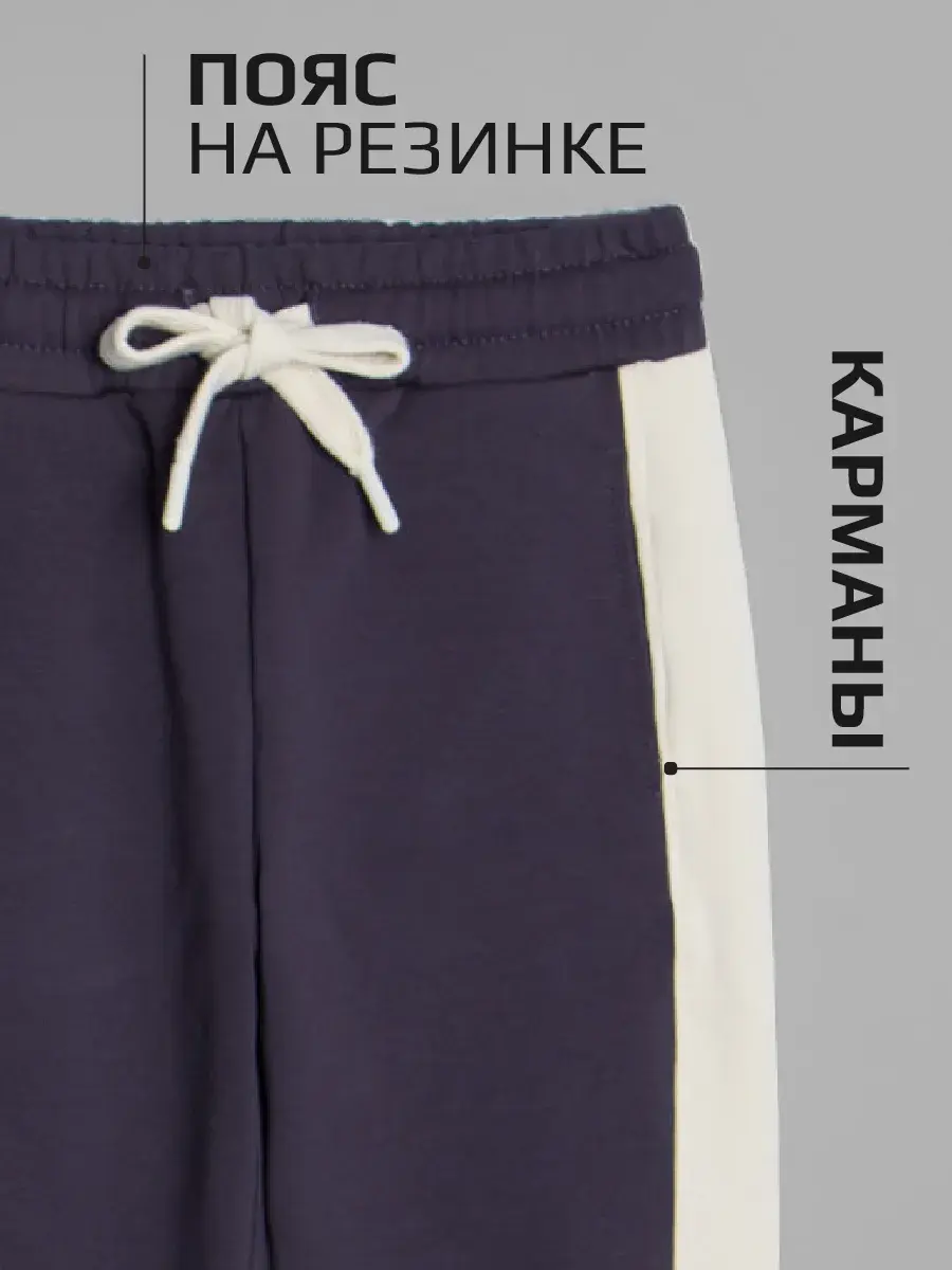 Брюки детские: Прямые брюки на эластичной резинке гарантируют комфорт при носке весь день. Дополнительные завязки помогут отрегулировать ширину по талии для идеальной посадки. Легкая ткань делает их подходящими как для осенней погоды, так и для прохладных летних вечеров.