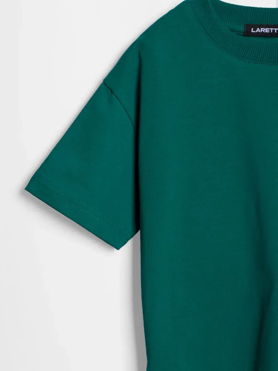 Футболка для детей: Дополняет комплект классическая футболка с коротким рукавом, выполненная из натурального хлопка. Она приятна на ощупь и не вызывает раздражения даже у самой чувствительной кожи. Футболка может быть как однотонной, так и с оригинальным принтом или надписью.