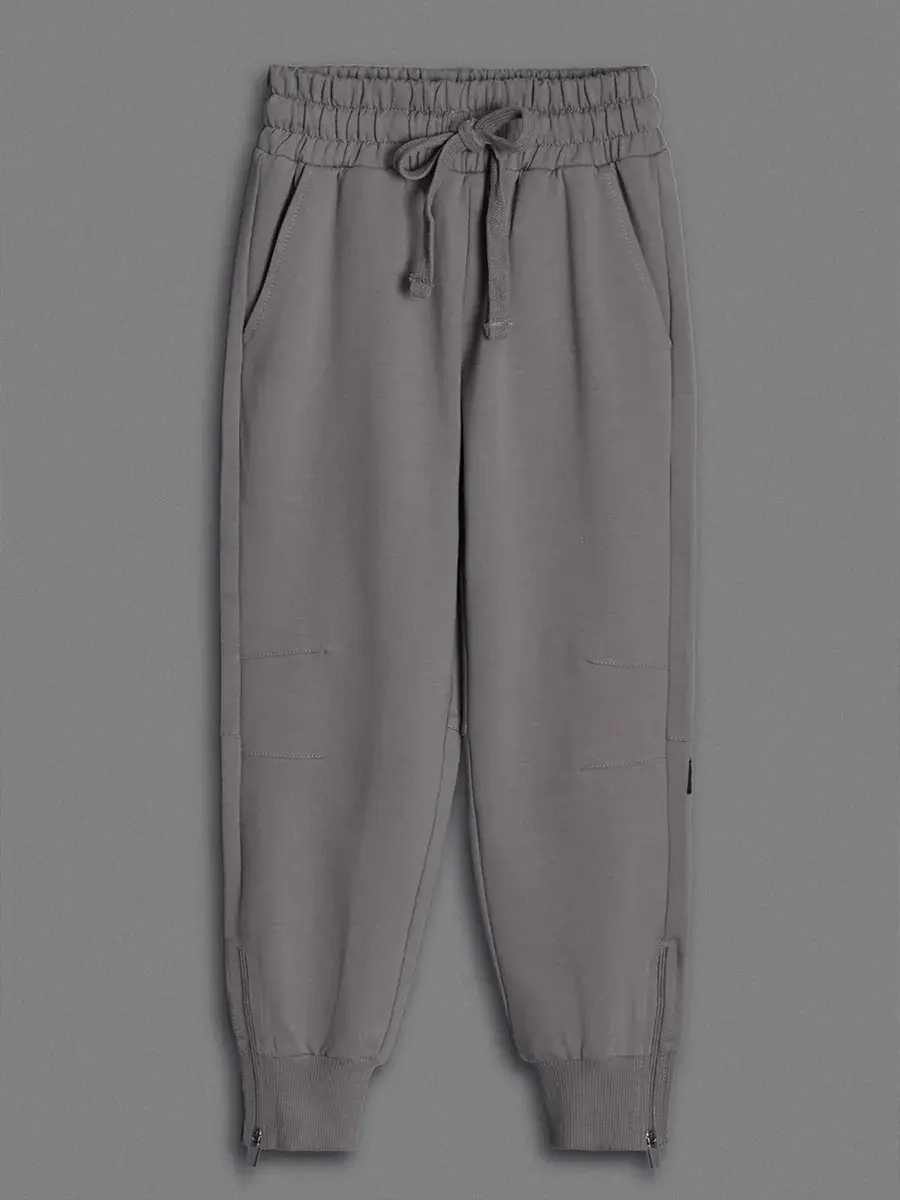 Брюки джоггеры имеют свободный крой с зауженными щиколотками и застежкой на манжете. Обеспечивают комфорт и стильный внешний вид.