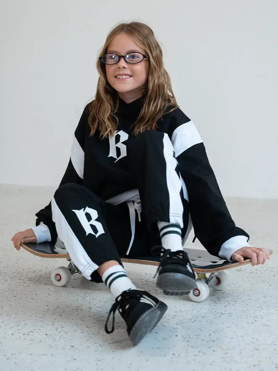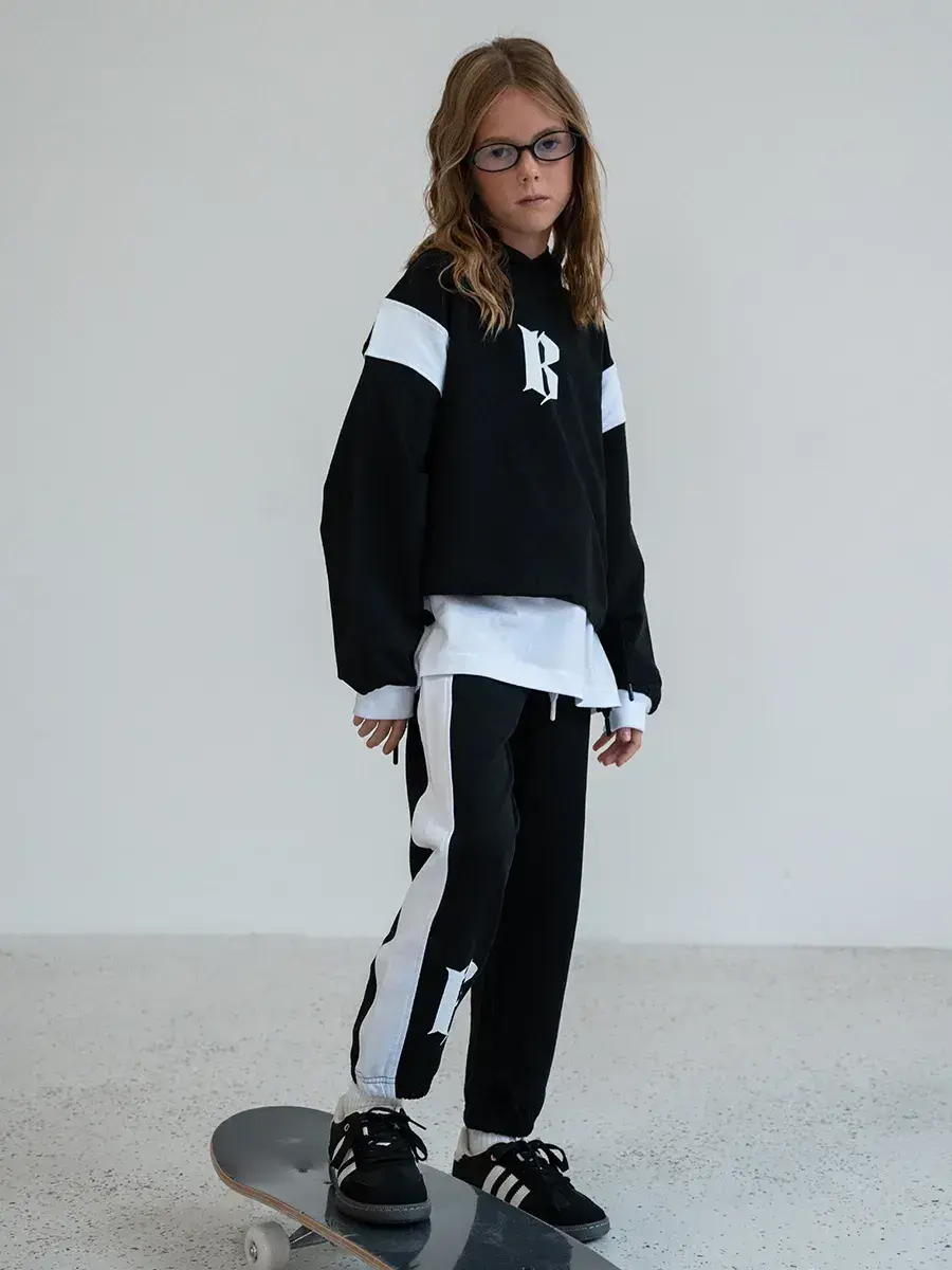 Черный спортивный костюм для девочек — идеальное сочетание стиля и комфорта. Костюм состоит из трех предметов: уютного худи с капюшоном, теплых брюк на резинке и мягкой футболки. Каждый элемент костюма создан с заботой о маленьких модницах, предпочитающих активный образ жизни.