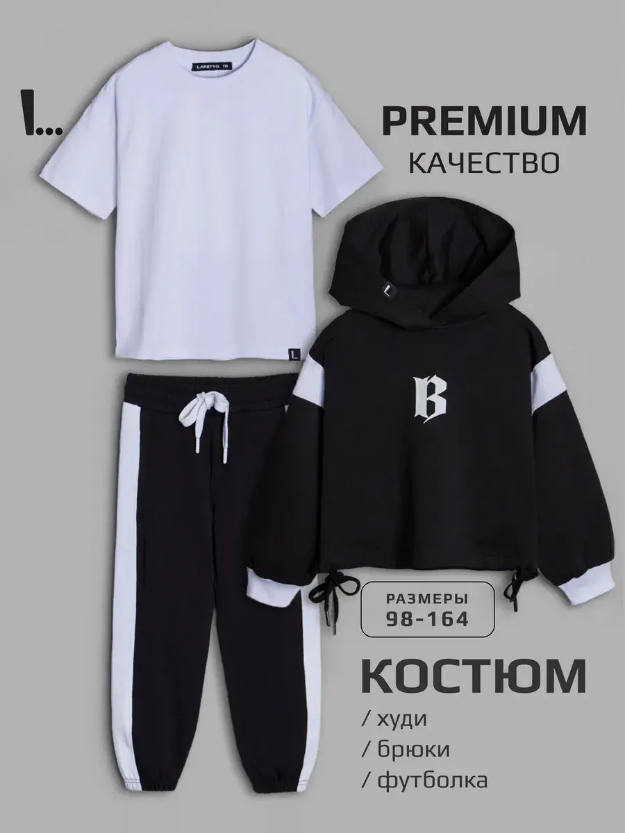 LRTT-491/00-0031855/Худи + брюки + футболка/чёрный