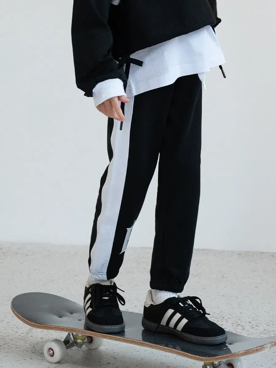 Брюки детские: Прямые брюки на эластичной резинке гарантируют комфорт при носке весь день. Дополнительные завязки помогут отрегулировать ширину по талии для идеальной посадки. Легкая ткань делает их подходящими как для осенней погоды, так и для прохладных летних вечеров.