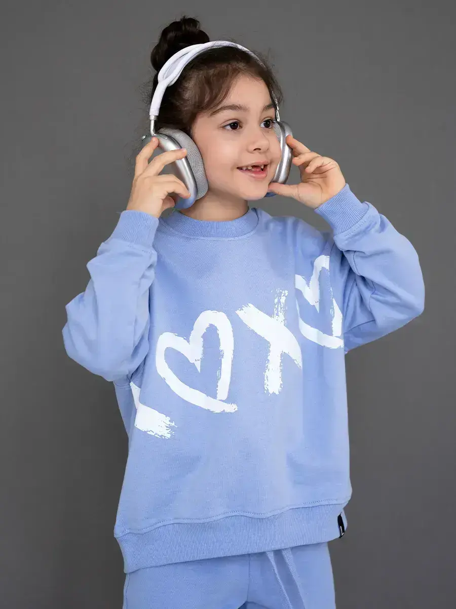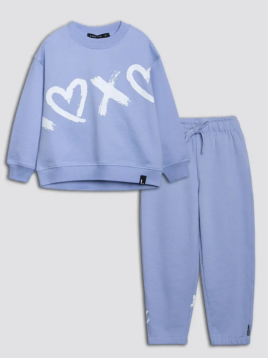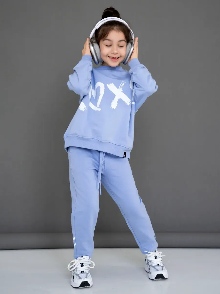 Костюм для девочки, состоящий из свитшота и брюк, отличается удобством и стилем. Изготовлен из высококачественного материала, который дарит комфорт на протяжении всего дня.