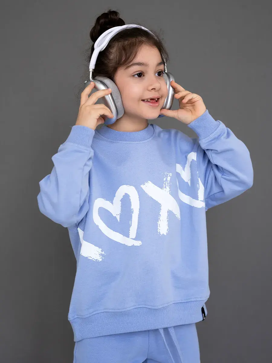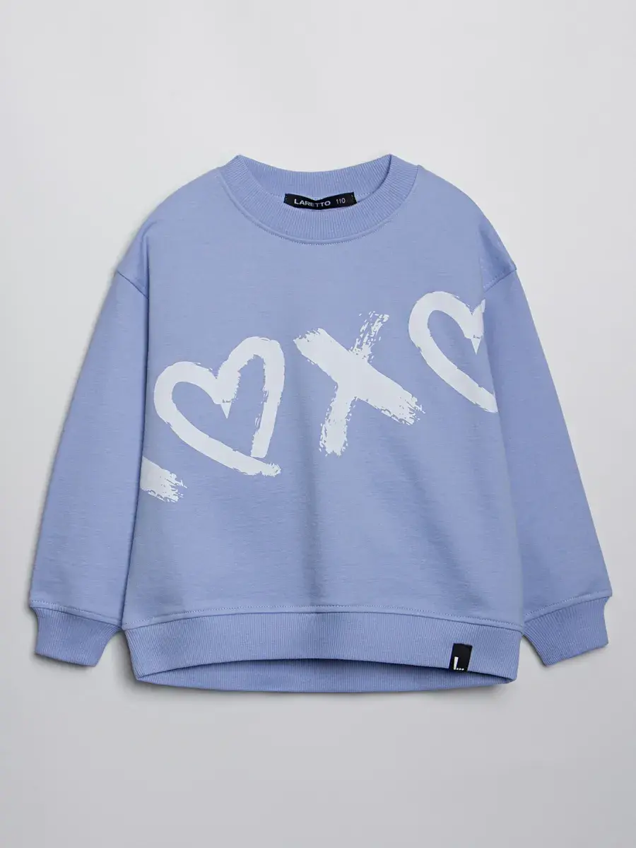 Свитшот с модным принтом - крупными сердецами и крестами подчеркнет индивидуальность вашей девочки и сделает её образ ярким и оригинальным, будет актуален для создания как повседневных, так и спортивных образов.