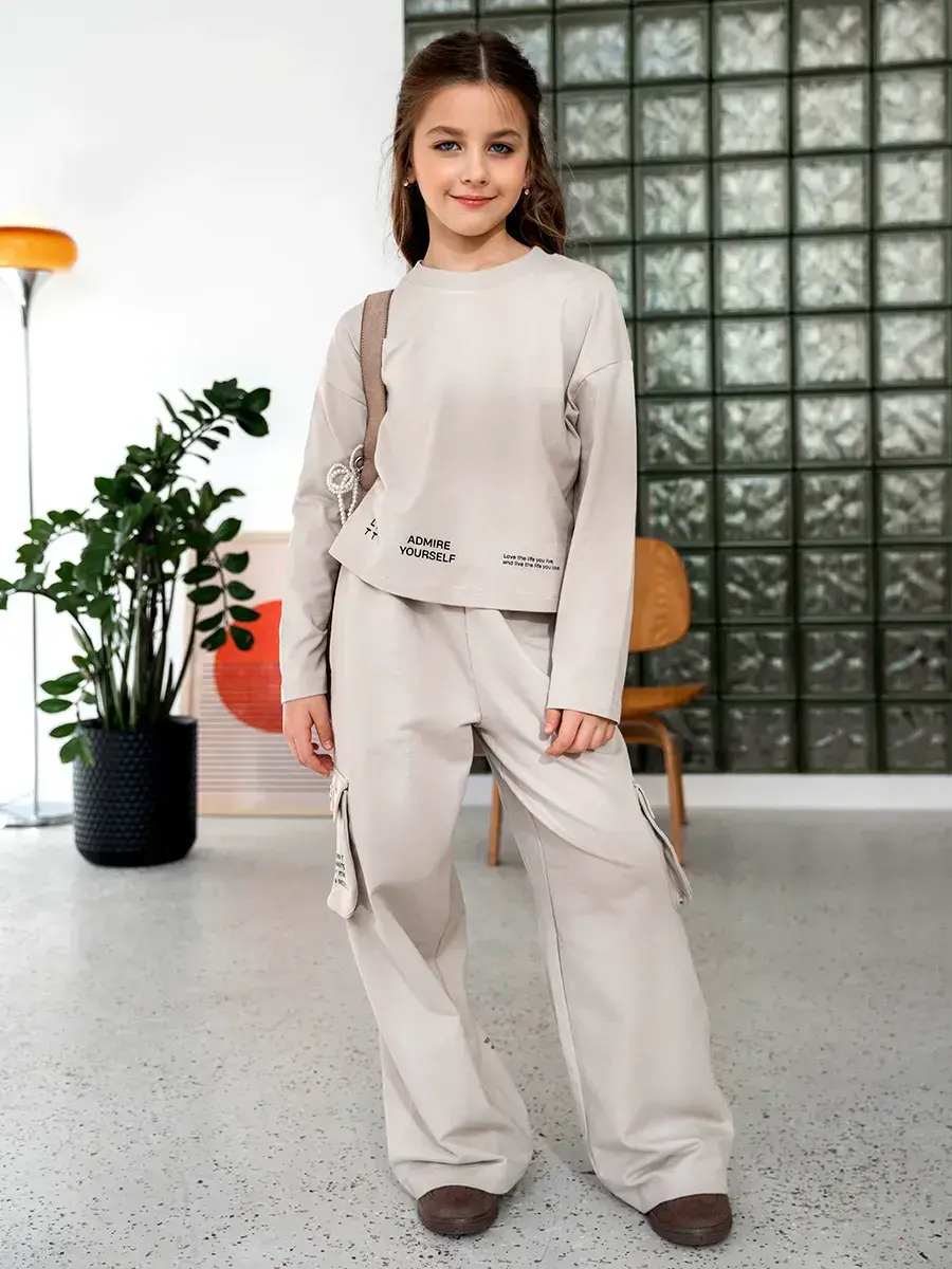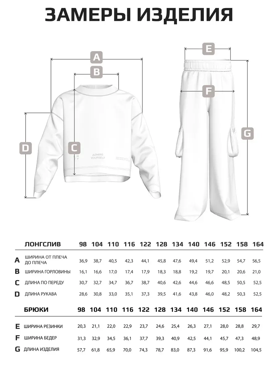 Спортивный костюм для девочки, который сочетает в себе стиль, комфорт и качество. Костюм для девочки состоит из удобного лонгслива и модных брюк клеш, которые подарят вашей малышке свободу движений в прохладные осенние дни.