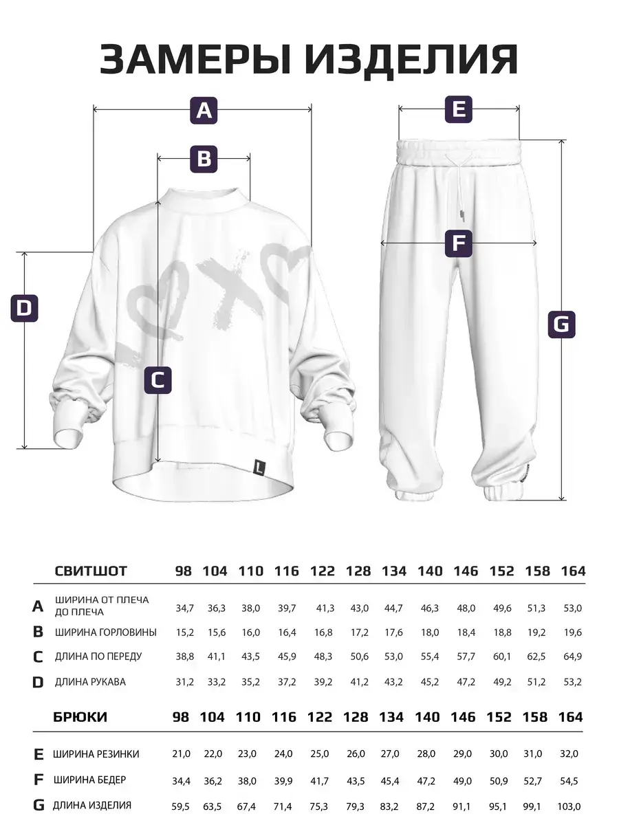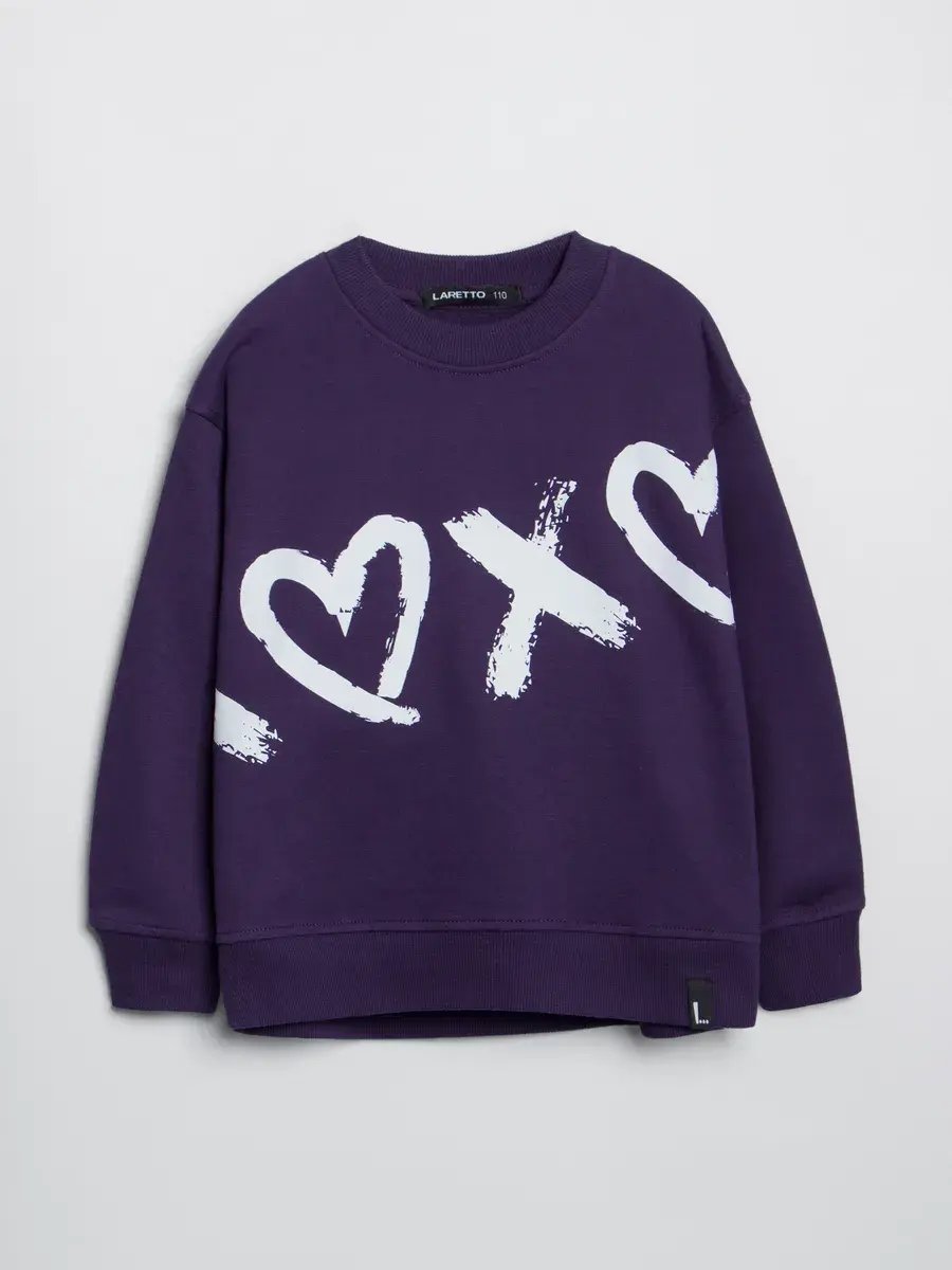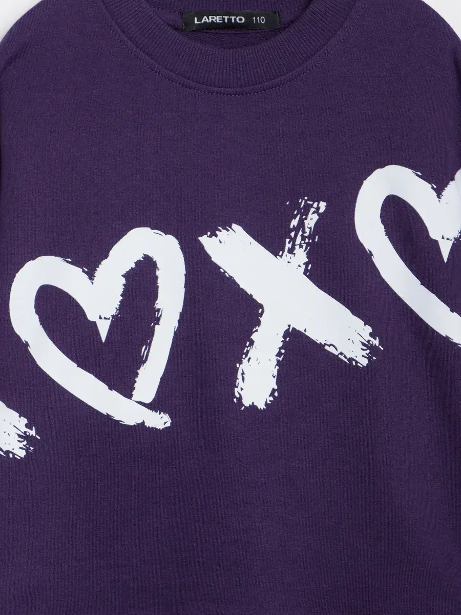 Свитшот с модным принтом - крупными сердецами и крестами подчеркнет индивидуальность вашей девочки и сделает её образ ярким и оригинальным, будет актуален для создания как повседневных, так и спортивных образов.
