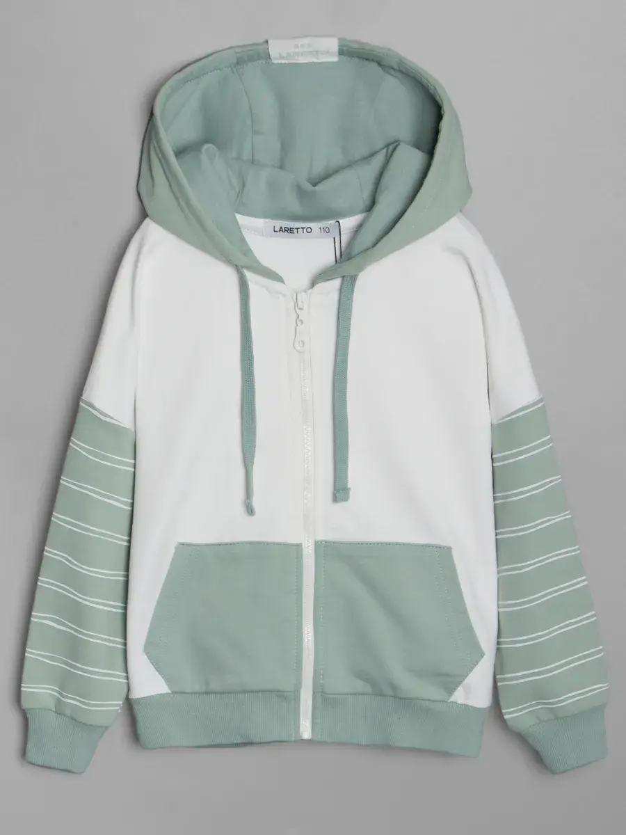 Худи для девочки: Изготовлена из высококачественного материала, который обеспечит комфотную носку. Стильная толстовка с капюшоном в спокойном оттенке идеально подходит для весны, а полосатый принт придаст индивидуальности образу.