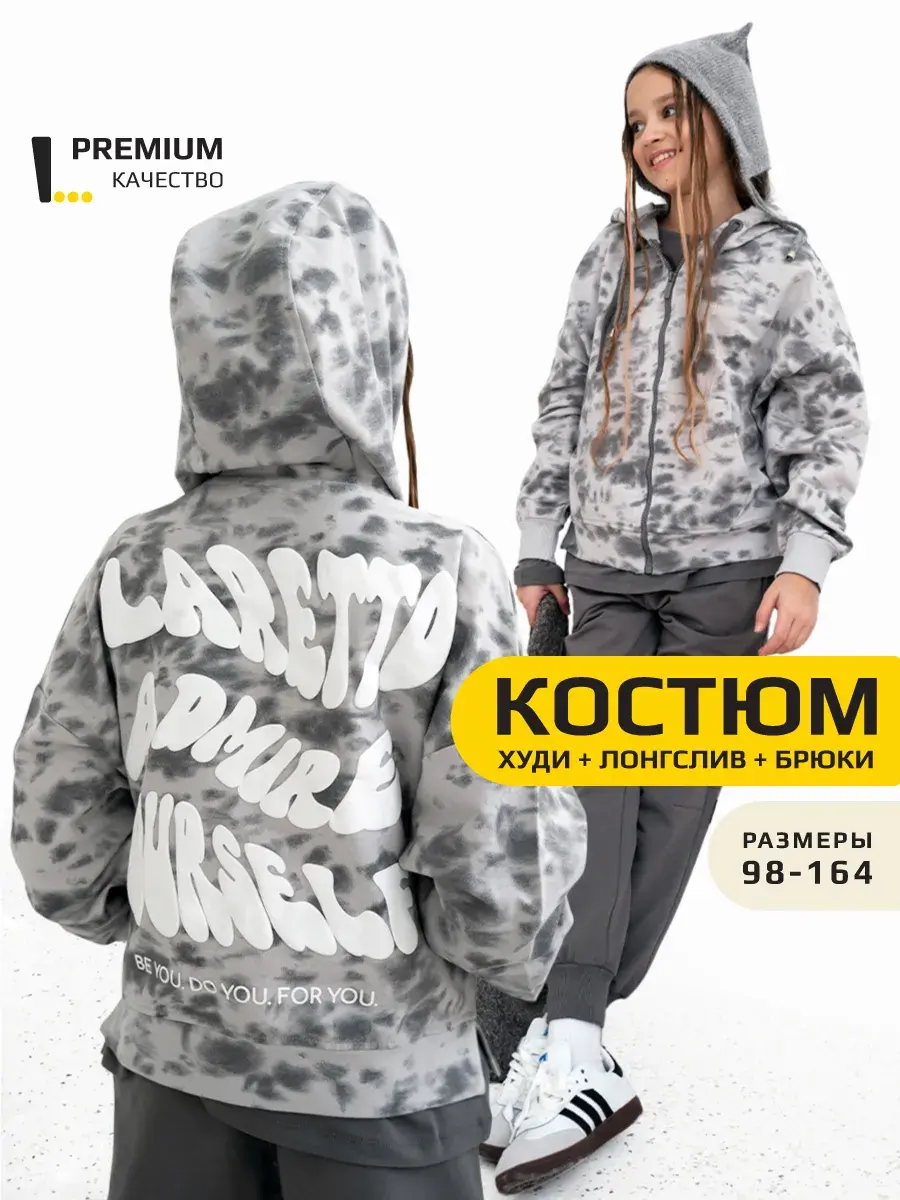Спортивный костюм для девочек — идеальное сочетание стиля и комфорта. Костюм детский состоит из уютного худи с капюшоном на молнии, лонгслива и брюк на резинке. Каждый элемент костюма для девочек создан с заботой о детях, предпочитающих активный образ жизни.