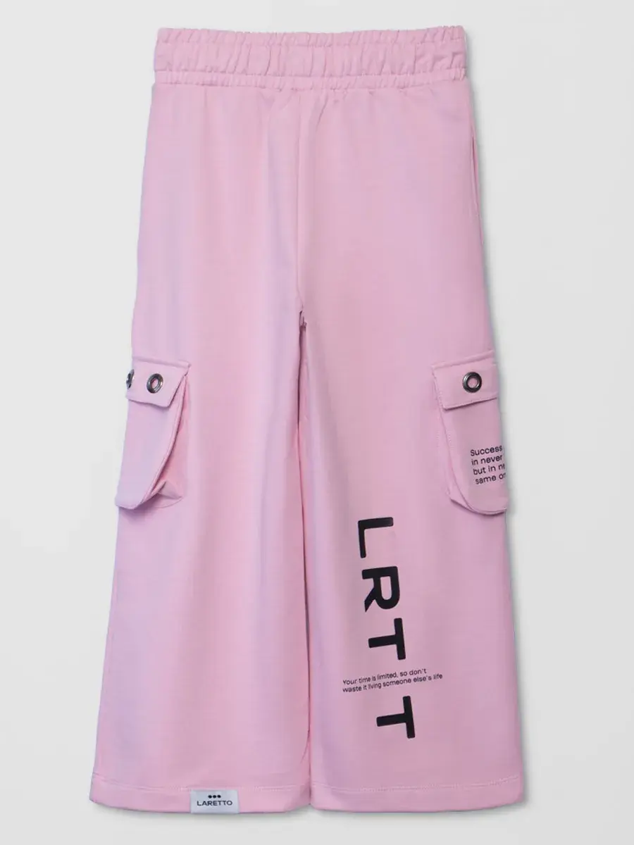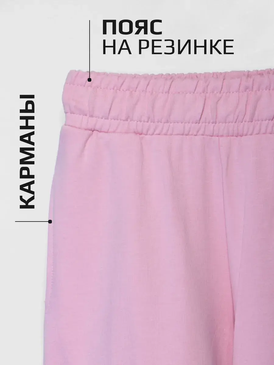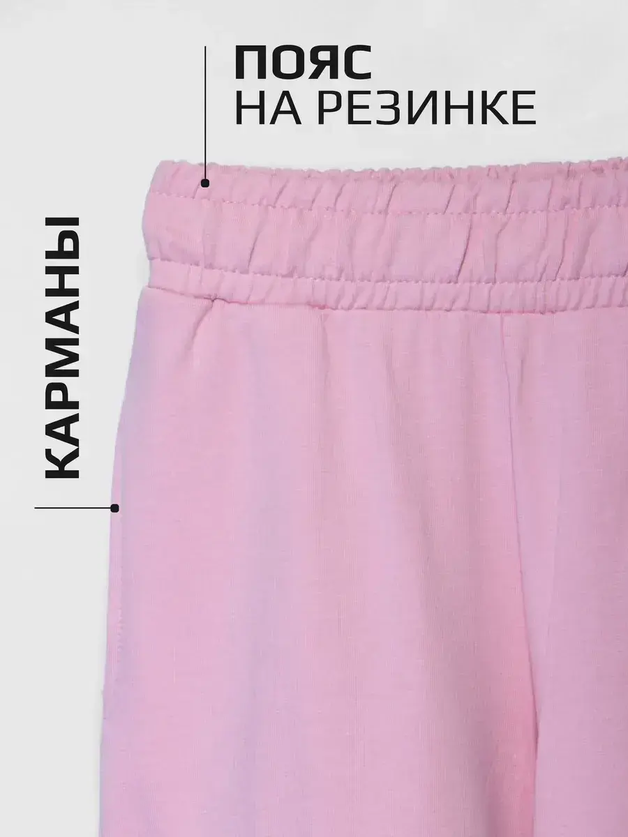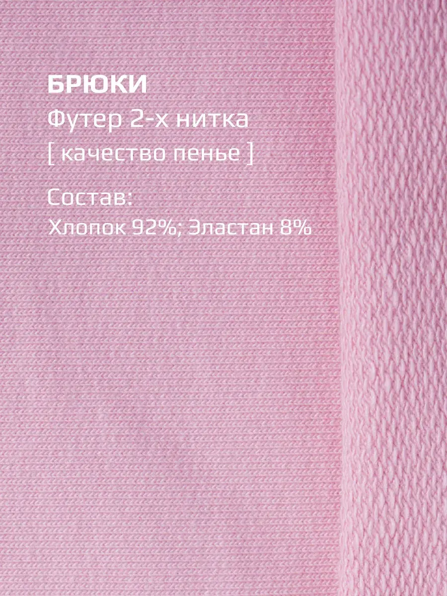 Брюки для девочек - выполнены также из трикотажной ткани на основе натурального хлопка. Широкий пояс на резинке не сдавливает животик ребенка и обеспечивает надежную фиксацию на талии. Классические спортивные детские брюки придают образу оригинальность и следуют последним модным тенденциям.