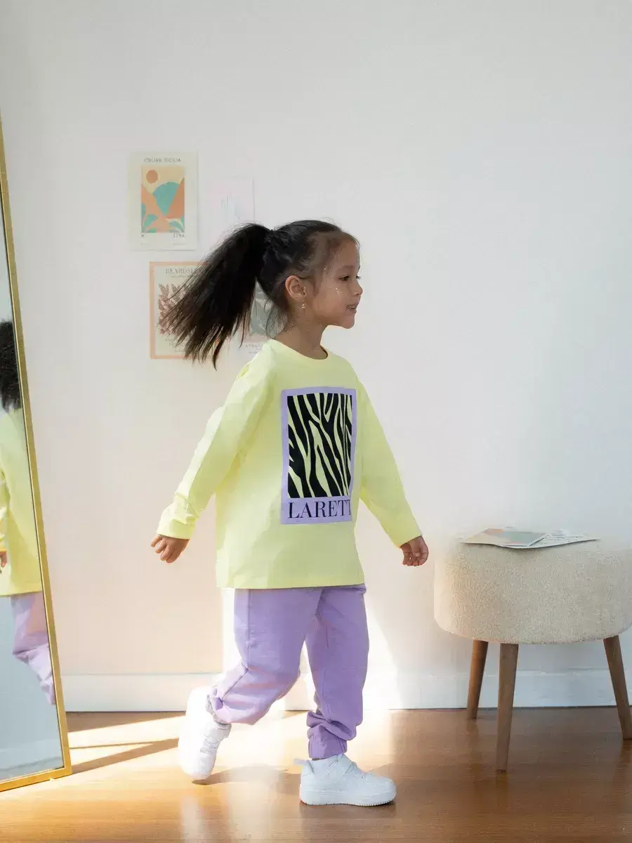 Спортивный костюм для девочек в школу, который сочетает в себе стиль, комфорт и качество. Этот трикотажный детский костюм состоит из удобного лонгслива и модных джоггеров, которые подарят вашей малышке свободу движений в прохладные осенние дни.