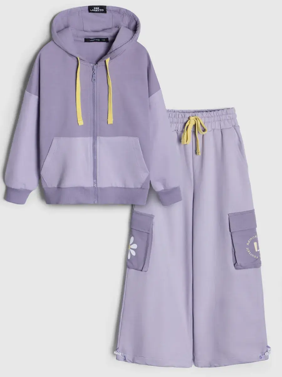 Спортивный костюм для девочки — идеальный выбор для активных малышей и подростков! Этот стильный сиреневый комплект включает в себя брюки палаццо на резинке с удобными карманами и модную толстовку на молнии с капюшоном. Это -уникальная коллекция от LARETTO. Он подходит для прогулок, тренировок, занятий в садике и школе. Изготовленный из качественных материалов, костюм обеспечивает комфорт и свободу движений, что делает его отличным вариантом для повседневной носки. Худи и брюки обеспечат удобство, а сам летний костюм для девочки. Яркие расцветки и современный дизайн порадуют как девочек, так и их родителей. Удобные брюки легко комбинируются с любой верхней одеждой, а зип худи защитит от ветра и прохлады. Подходит для девочек всех возрастов, этот костюм станет незаменимым элементом гардероба, позволяя чувствовать себя стильно и уверенно в любой ситуации. Выбирайте лучший спортивный стиль для вашей девочки! Трикотажный комплект идеально впишется в любой гардероб!
