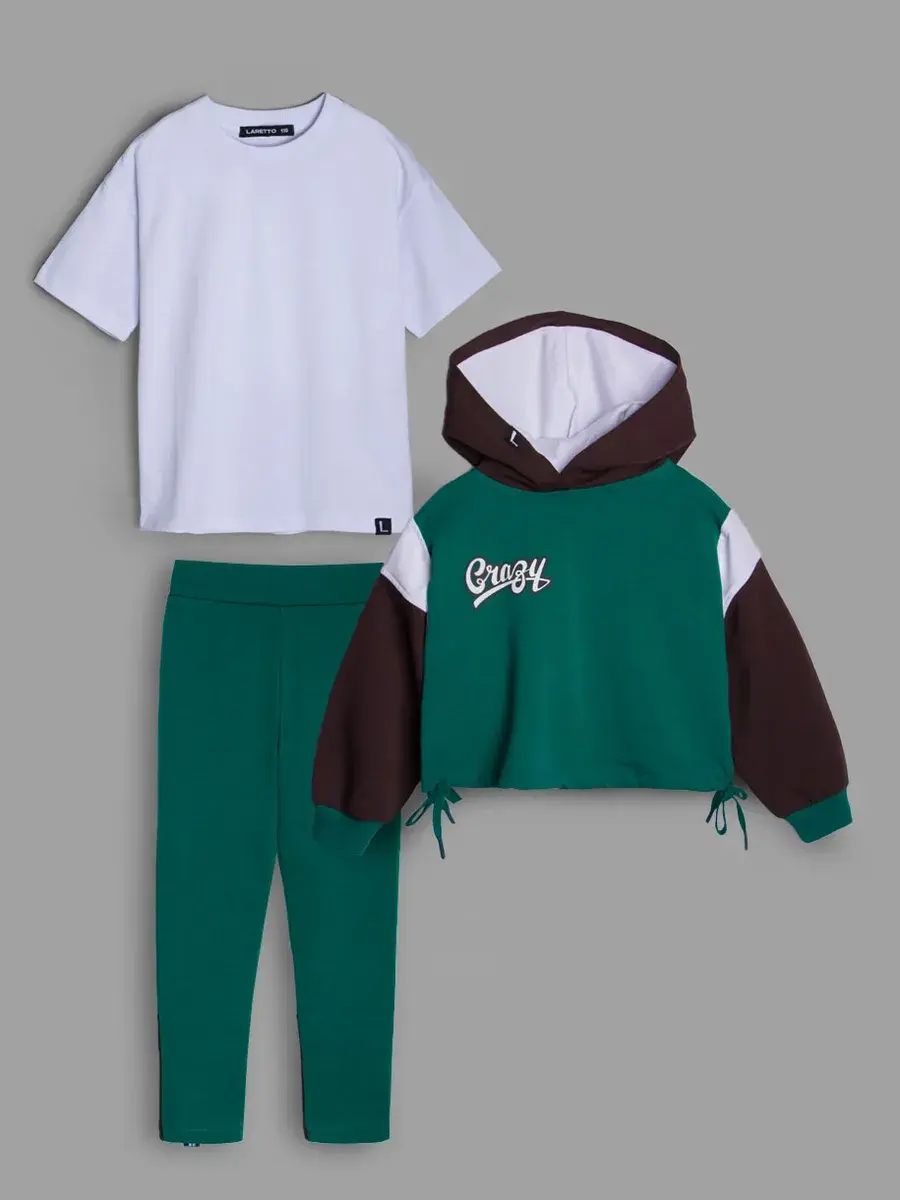 LRTT-487/00-0031962/Худи + футболка + леггинсы/темно-зеленый