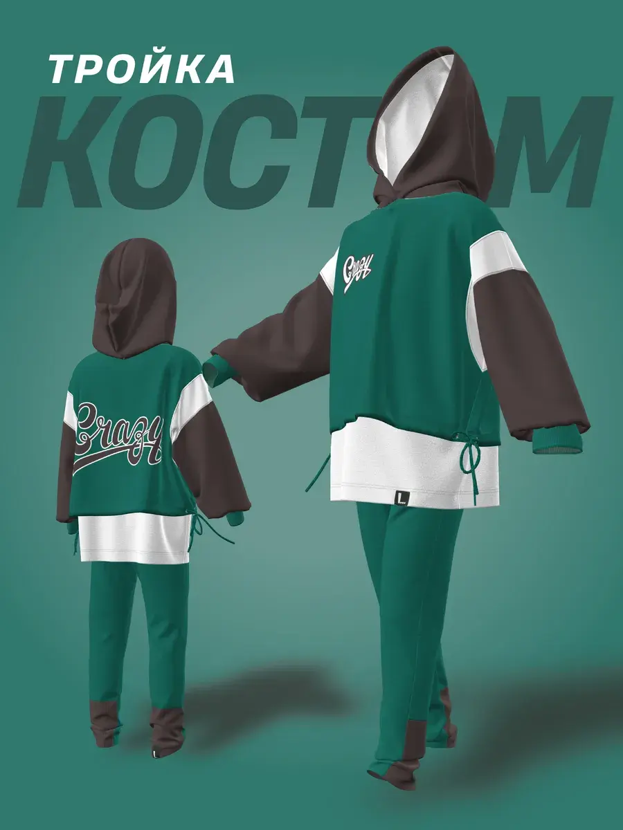 Зеленый спортивный костюм для девочек — идеальное сочетание стиля и комфорта. Костюм для девочки состоит из трех предметов: уютного худи с капюшоном, теплых брюк на резинке и мягкой футболки. Каждый элемент костюма создан с заботой о маленьких модницах, предпочитающих активный образ жизни.