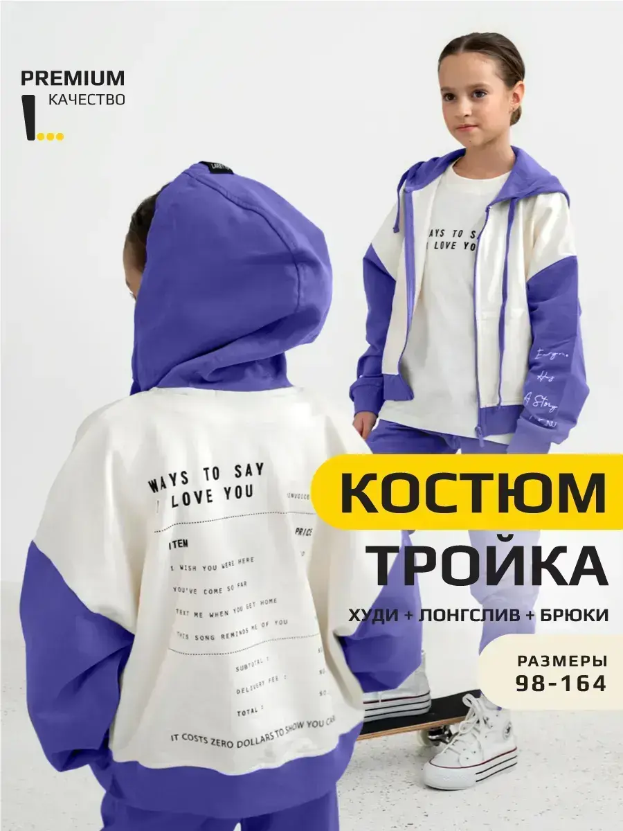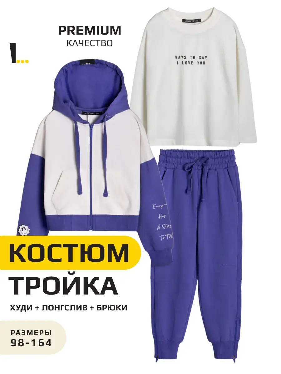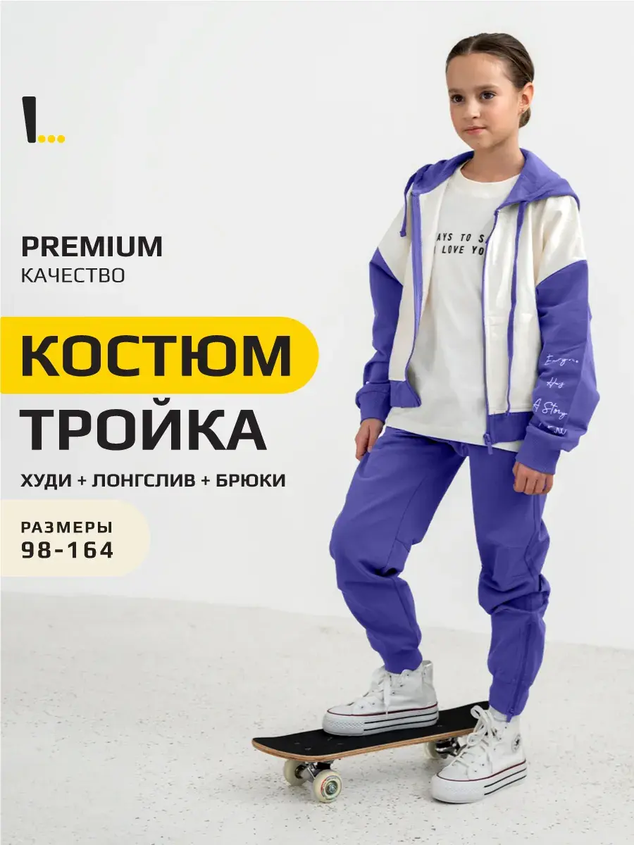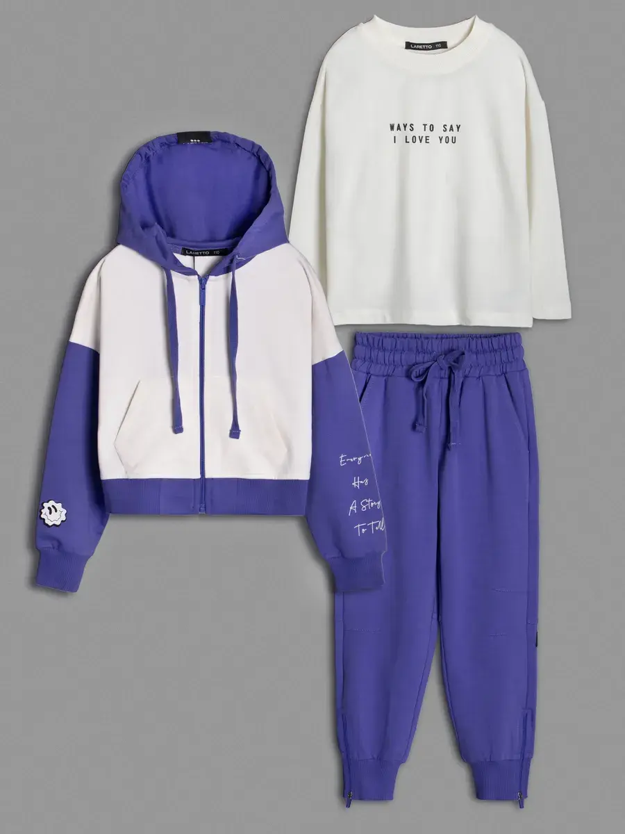 Стильный спортивный костюм для девочки. В базовых цветах, состоит из уютного свитшота, практичного лонгслива и комфортных брюк джоггеров. Этот комплект идеально подходит для активных игр, занятий спортом и повседневной носки.