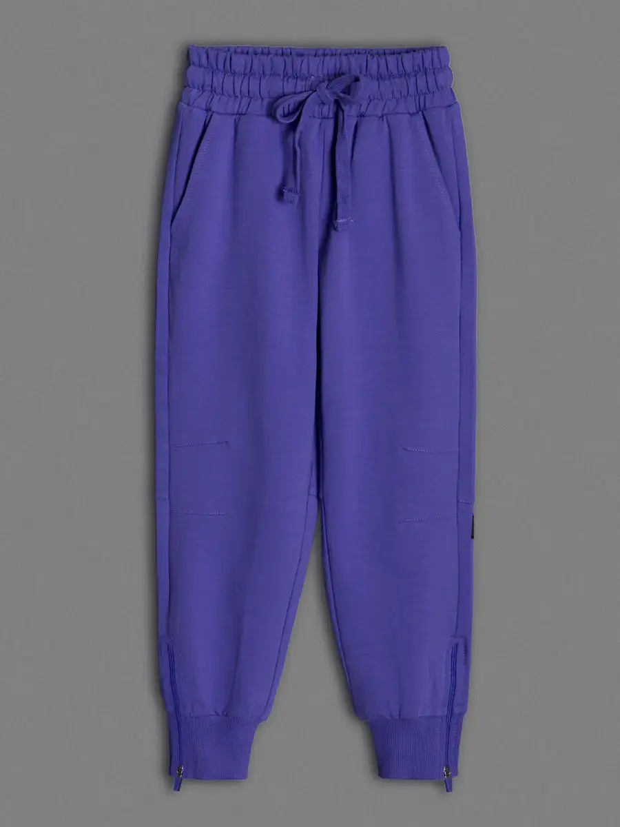 Брюки джоггеры имеют свободный крой с зауженными щиколотками и застежкой на манжете. Обеспечивают комфорт и стильный внешний вид.