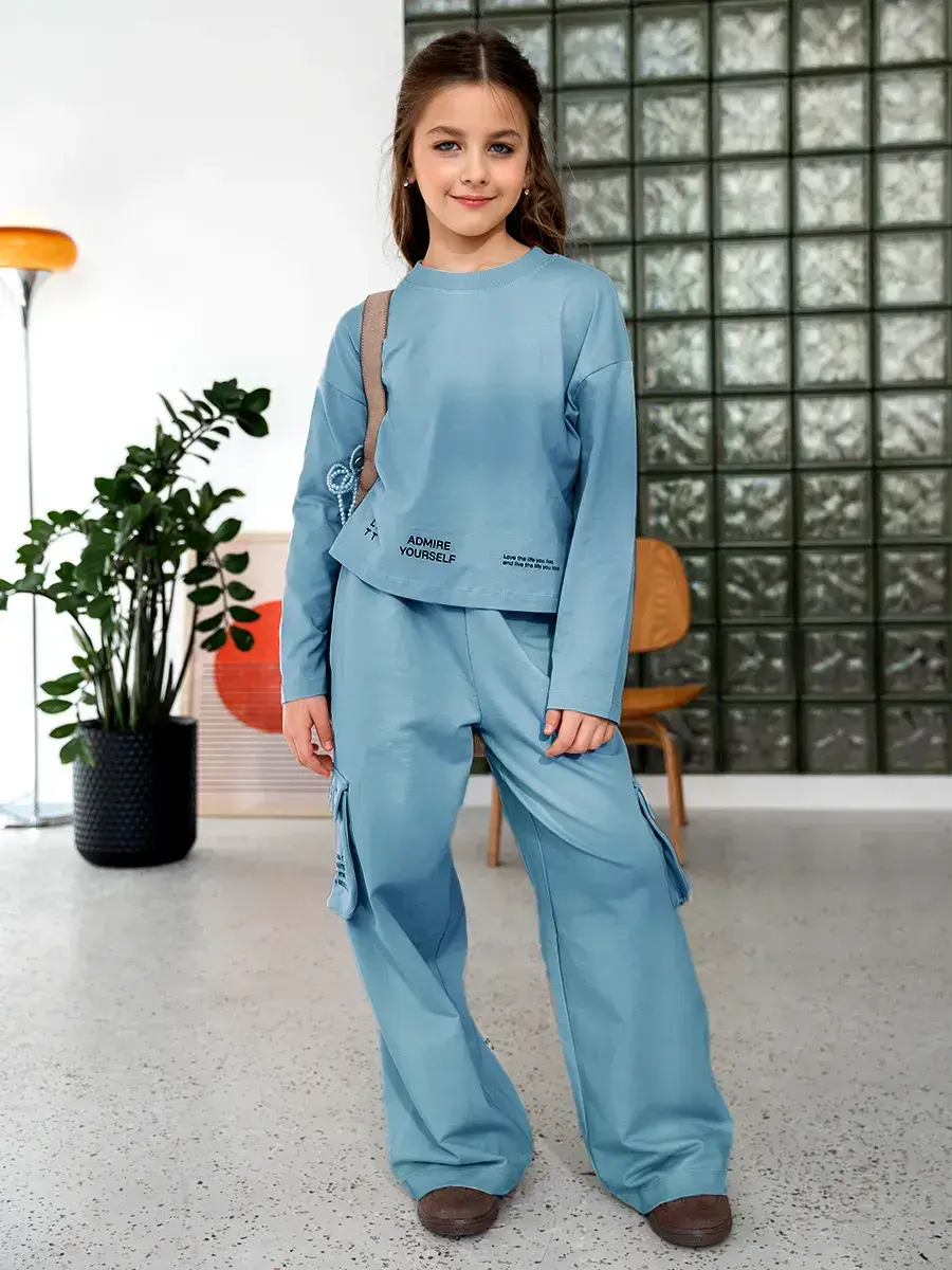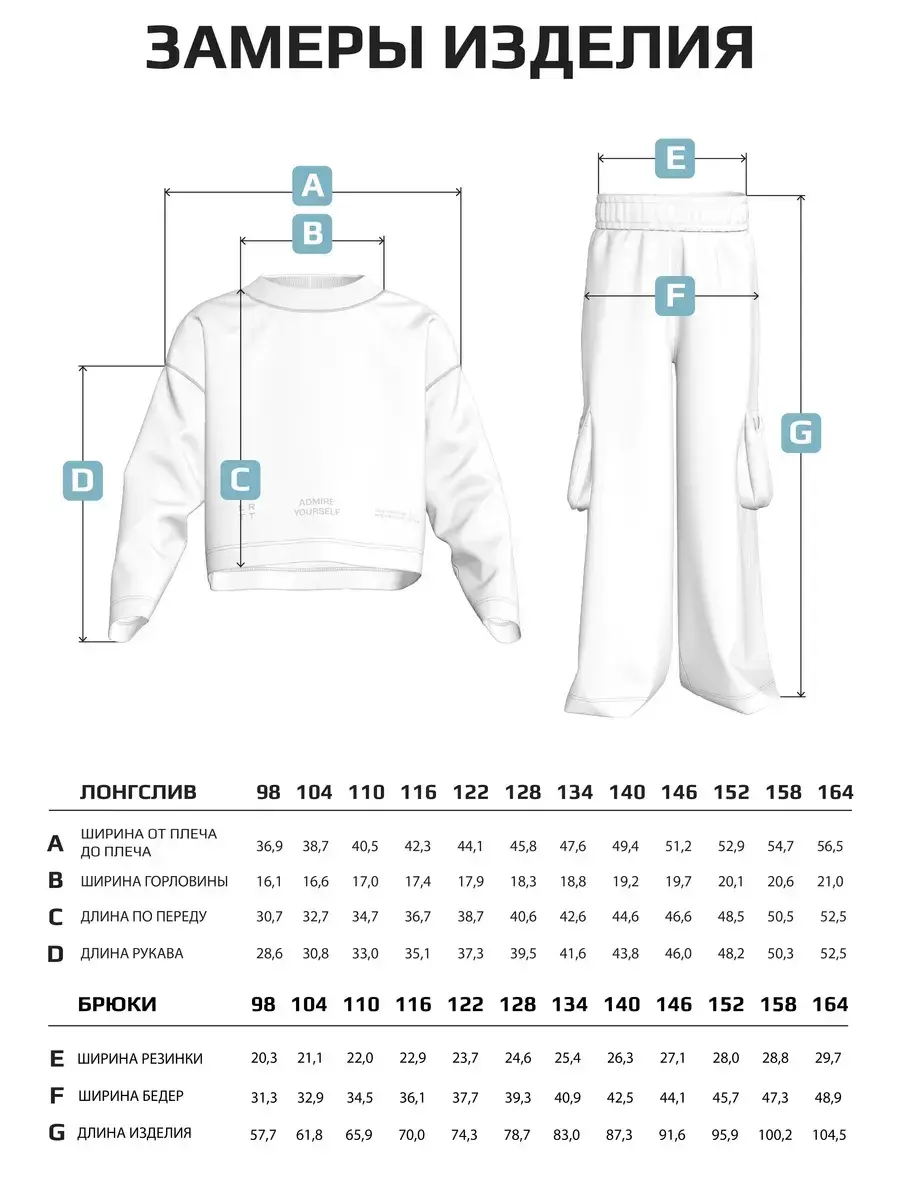 Спортивный костюм для девочек, который сочетает в себе стиль, комфорт и качество. Этот трикотажный детский костюм состоит из удобного лонгслива и модных брюк клеш, которые подарят вашей малышке свободу движений в прохладные осенние дни.