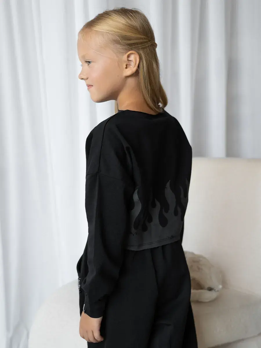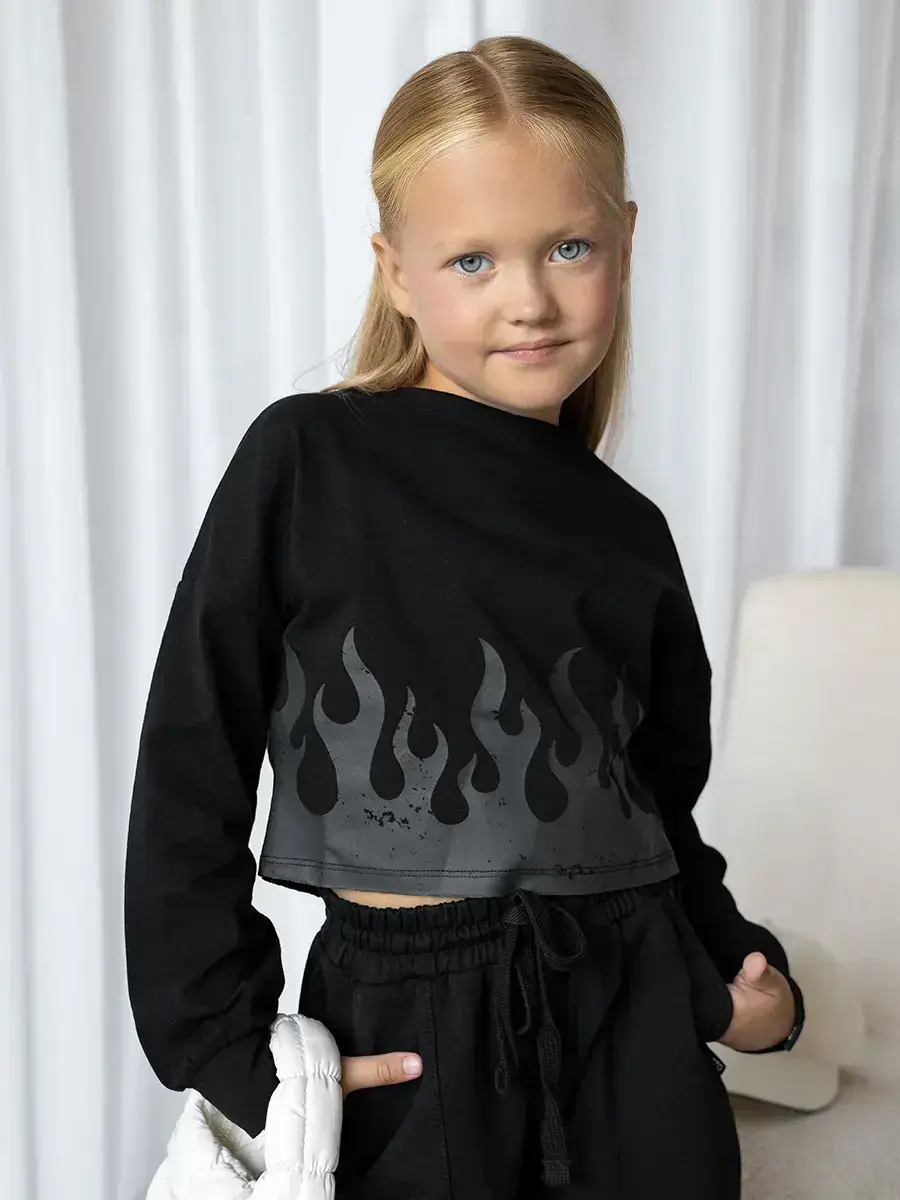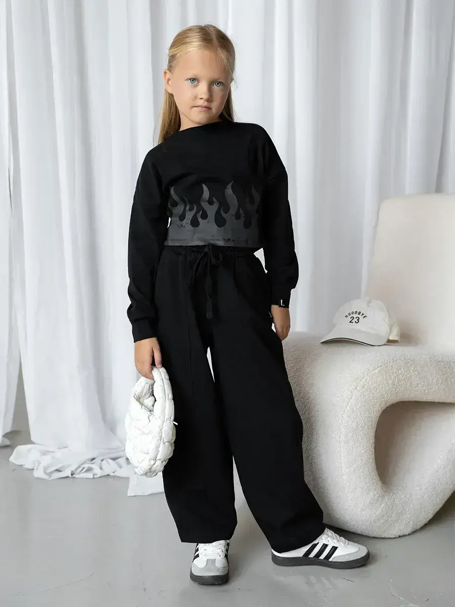 Спортивный костюм для девочек, который сочетает в себе стиль, комфорт и качество. Этот трикотажный детский костюм состоит из удобного укороченного лонгслива и модных брюк, которые подарят вашей малышке свободу движений!