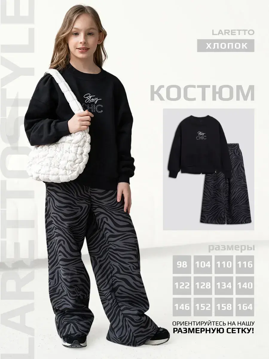 Костюм для девочек — идеальное сочетание стиля и комфорта. Это - уникальная коллекция от LARETTO. Детский костюм состоит из уютного свитшота для девочек и брюк на резинке. Каждый элемент костюма для девочек создан с заботой о маленьких модницах, предпочитающих активный образ жизни.