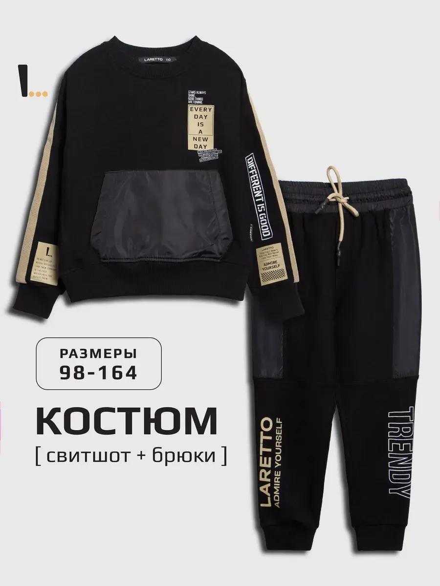 Спортивный костюм для мальчика — идеальное сочетание стиля и комфорта. Детский костюм состоит из уютного детского свитшота и брюк на резинке. Каждый элемент костюма создан с заботой о маленьких модниках, предпочитающих активный образ жизни.