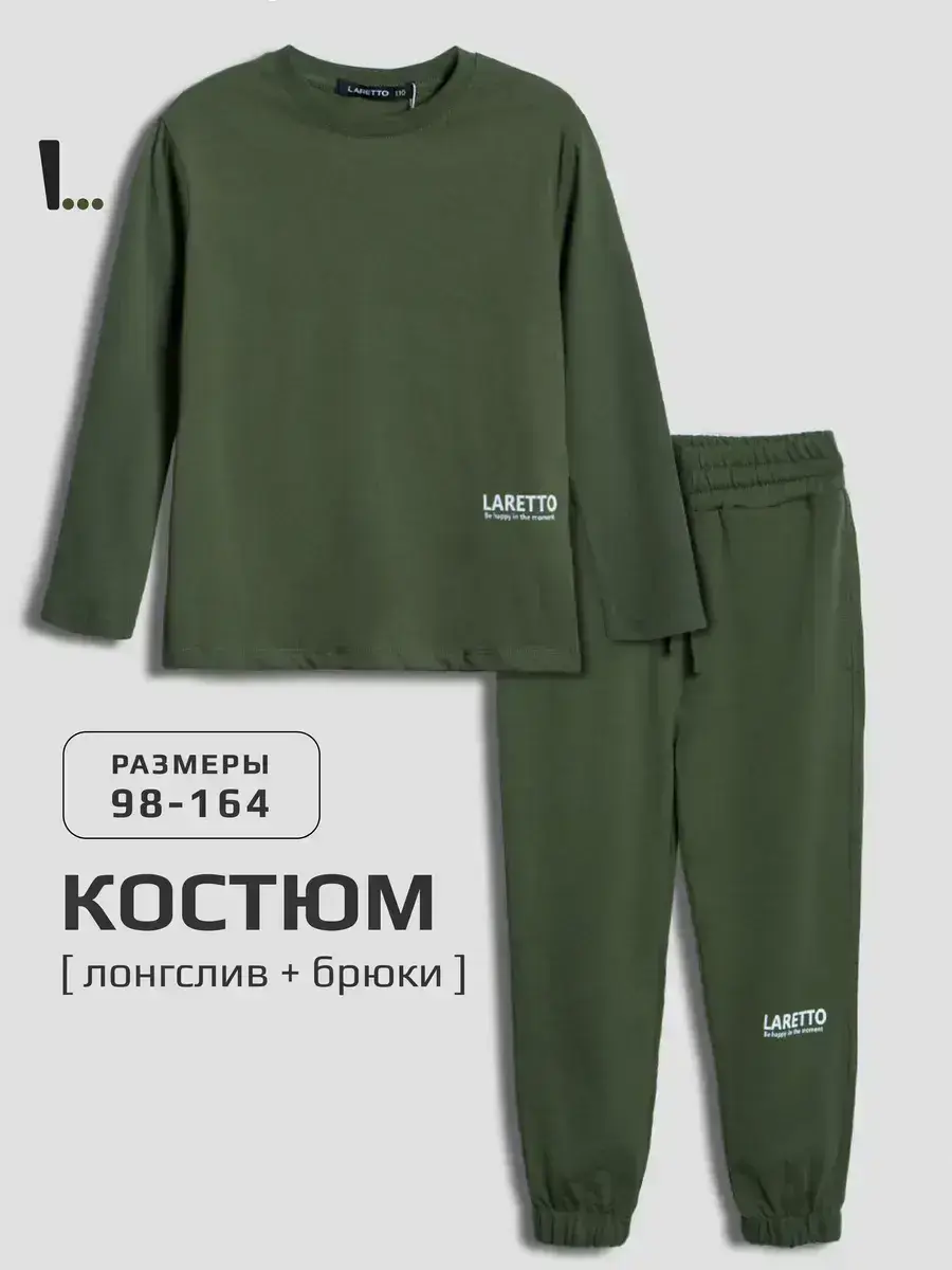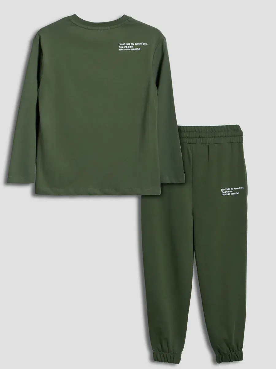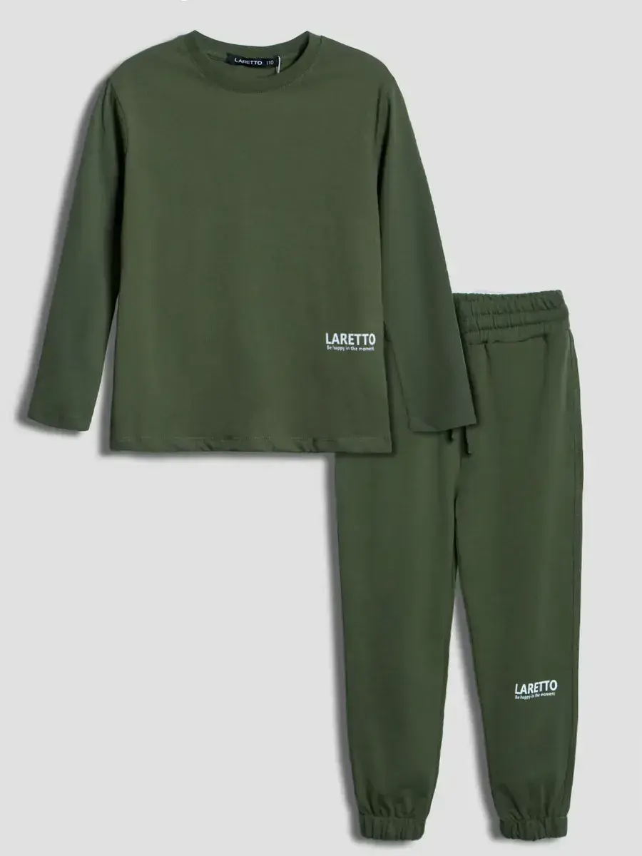 Спортивный костюм для мальчика, который сочетает в себе стиль, комфорт и качество. Этот трикотажный зеленый детский костюм состоит из удобного лонгслива и модных брюк, которые подарят вашей малышке свободу движений в весенние дни.