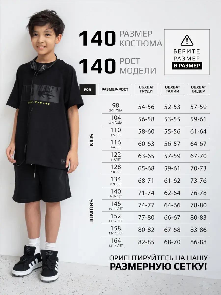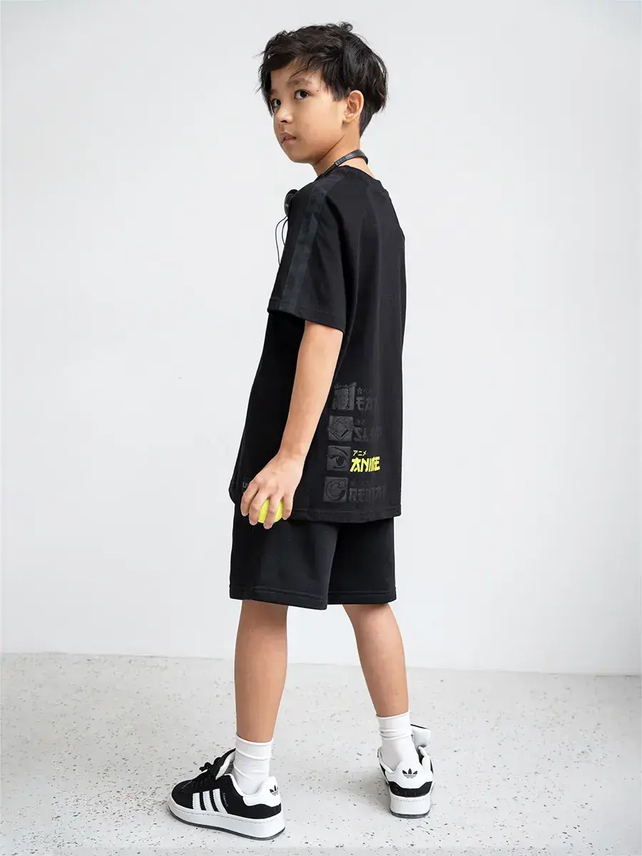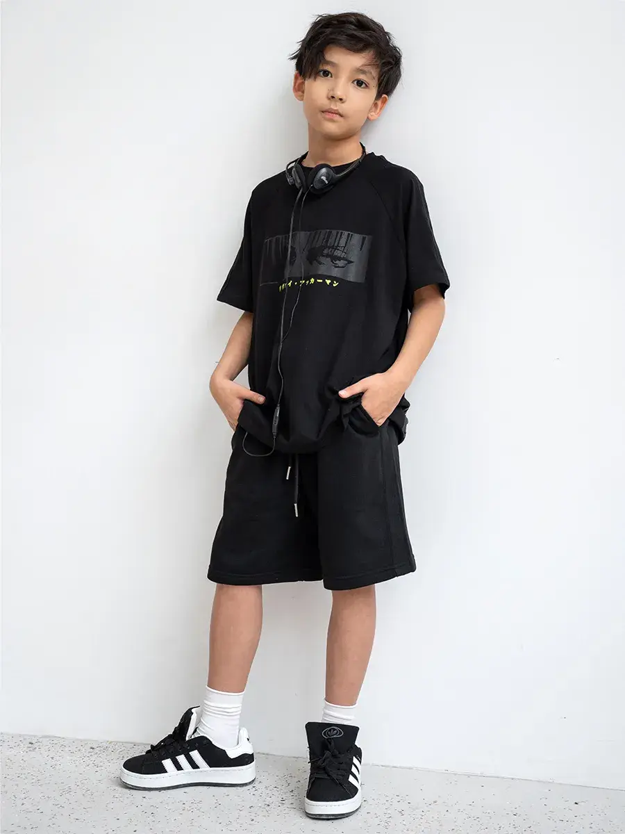 Футболка для мальчиков свободного кроя из качественного трикотажа позволяет коже дышать, а принт в корейском стиле добавляет яркости в повседневный образ. Детские шорты на резинке для мальчика легко регулируются, что гарантирует идеальную посадку во время игр, прогулок или занятий спортом.