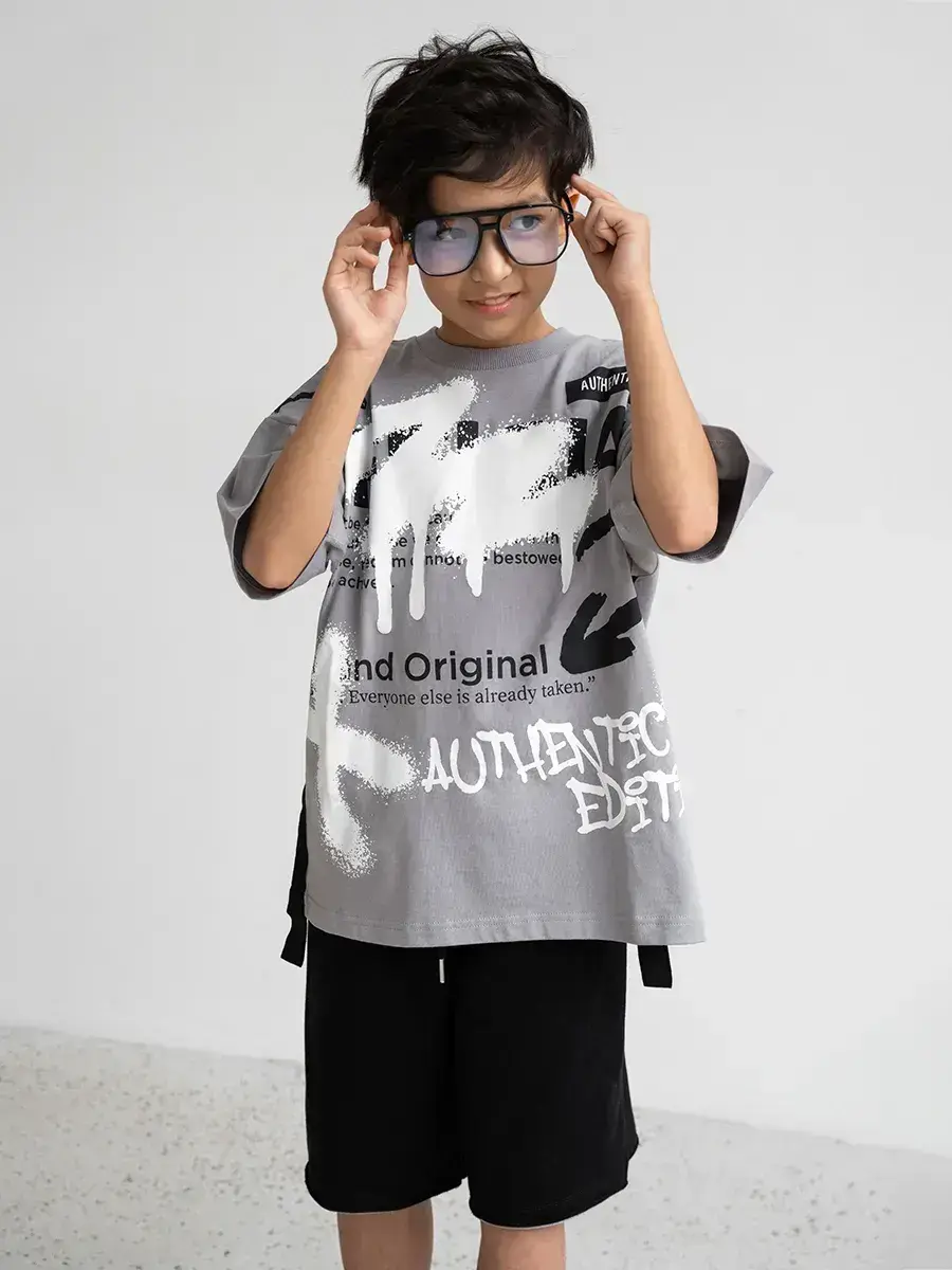 Ищете идеальный спортивный костюм для мальчика на лето? Наш стильный комплект для детского сада в уличном стиле — это то, что вам нужно! Он включает легкую футболку и удобные шорты на резинке с завязками, что обеспечивает отличную посадку и комфорт в любое время. Изготовленный из качественного трикотажа, этот костюм подходит как для малышей, так и для подростков, обеспечивая свободу движений во время активных игр и прогулок. Глубокие карманы позволяют удобно хранить мелочи, а современный дизайн в стиле Streetwear и Streetstyle сделает вашего ребенка настоящим модником в детском саду и школе. Идеален для летних приключений, спортивных мероприятий, занятий физкультурой в школе или просто для прогулок с друзьями. Выберите наш детский спортивный костюм, чтобы ваш ребенок выглядел стильно и чувствовал себя комфортно в любое время!