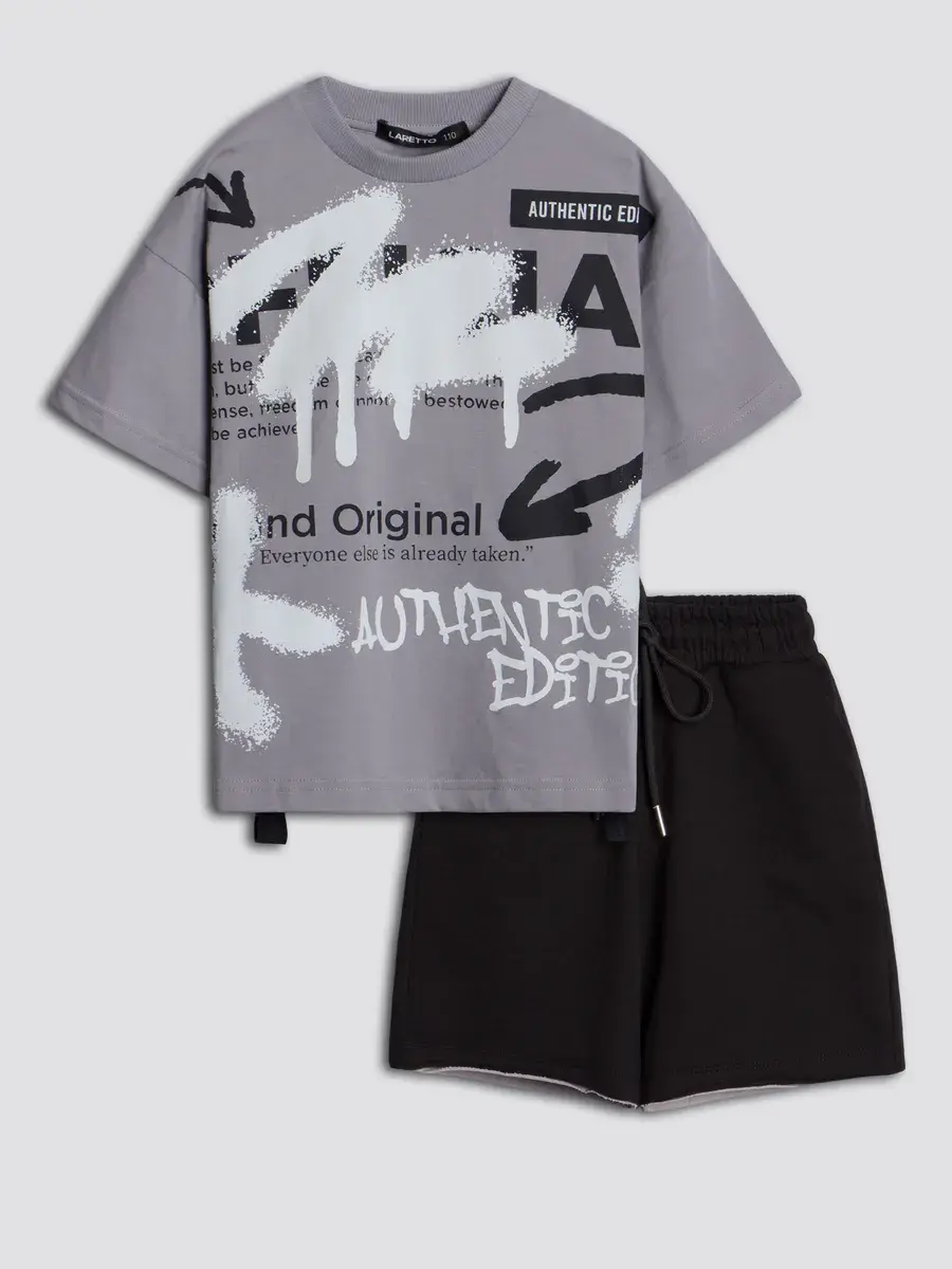 LRTT-713/00-0033511/Футболка + шорты/серый;черный