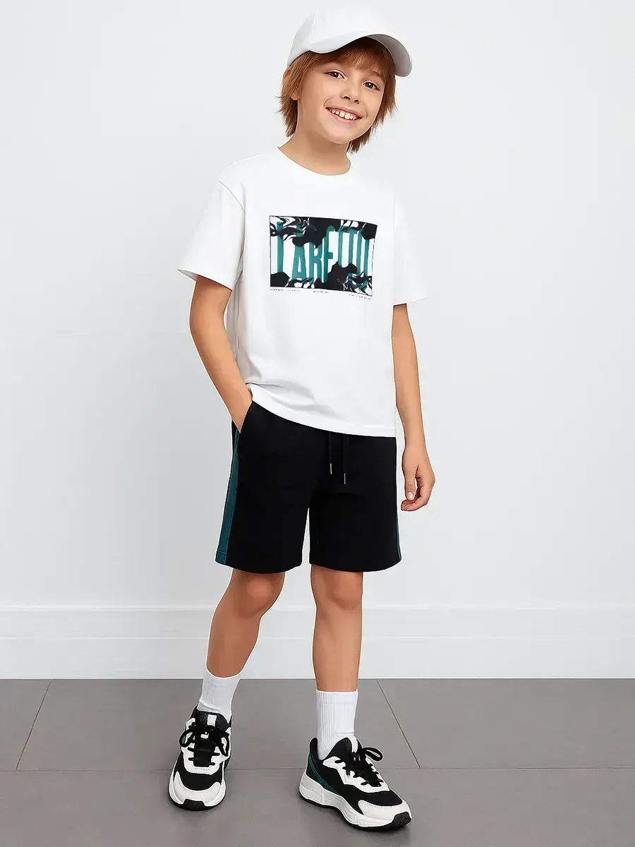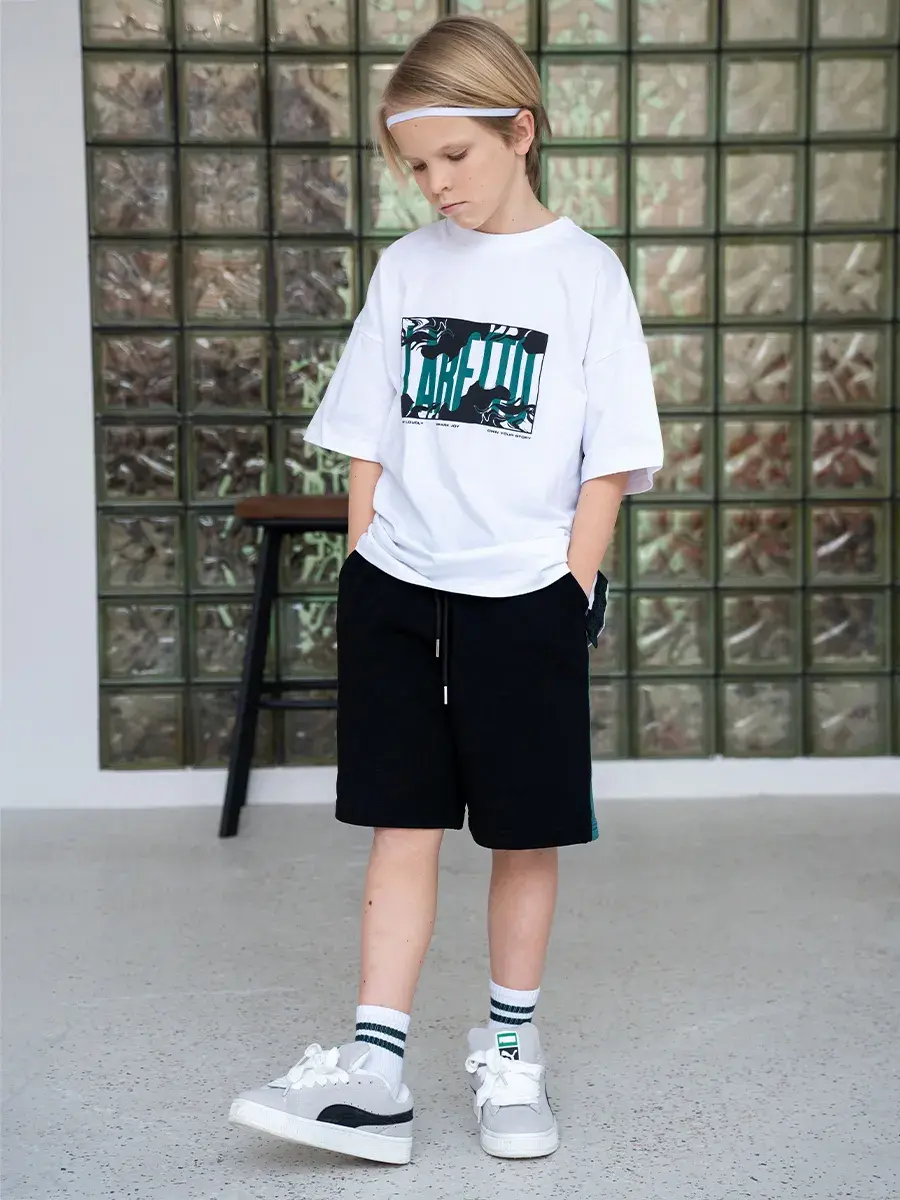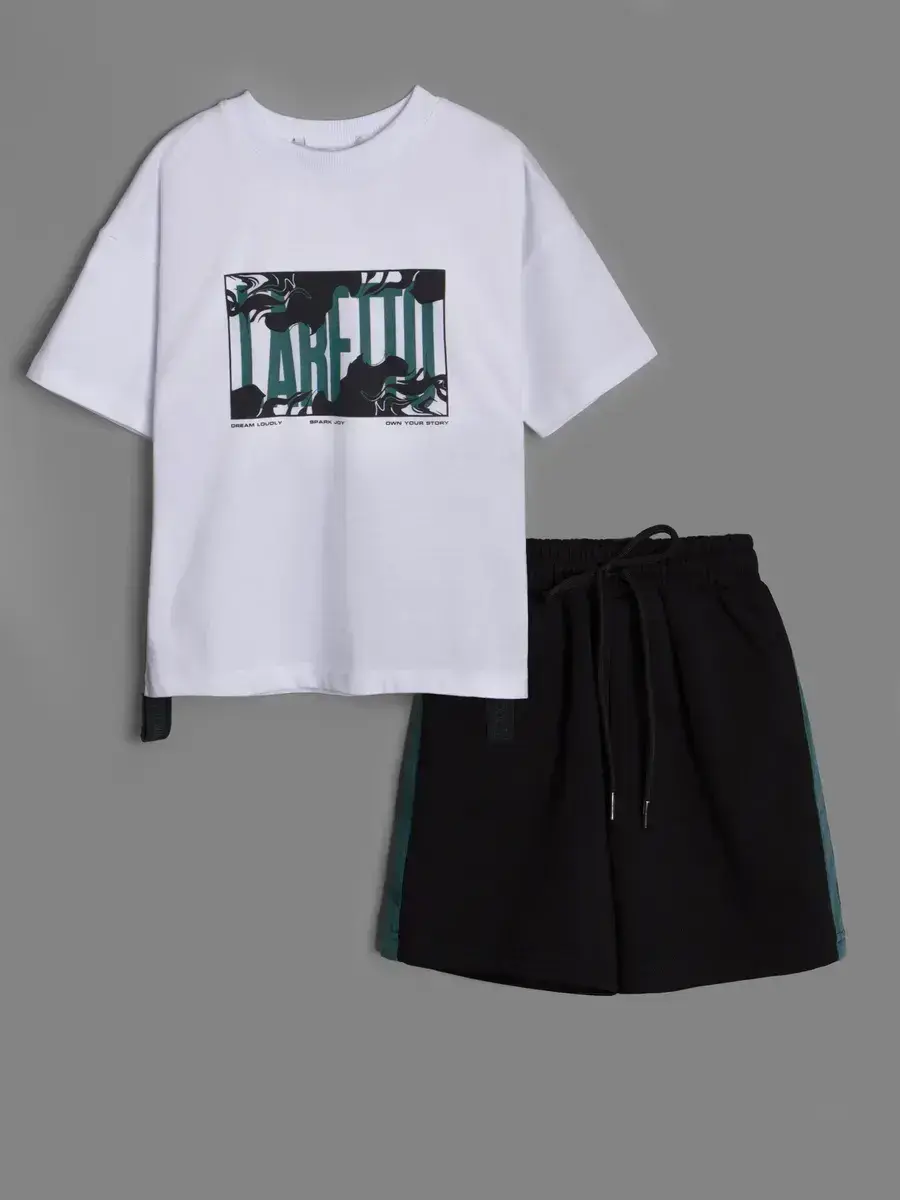 Откройте летний сезон с нашим стильным спортивным костюмом для мальчика в корейском стиле! Этот комплект включает в себя удобные детские шорты и легкую футболку, идеально подходящие для активных прогулок и занятий физкультурой в школе. Изготовленный из качественного трикотажа, костюм для детей обеспечивает комфорт и свободу движений. Резинка на поясе и завязки позволяют легко регулировать размер, что делает его подходящим как для малышей, так и для подростков. Стильный принт добавляет оригинальности, а глубокие карманы обеспечивают удобство для хранения мелочей. Этот школьный костюм для мальчиков станет отличным выбором для летних игр на свежем воздухе, прогулок с друзьями, занятий спортом или активного отдыха. Позвольте вашему ребенку выглядеть стильно и чувствовать себя комфортно в нашем спортивном костюме!