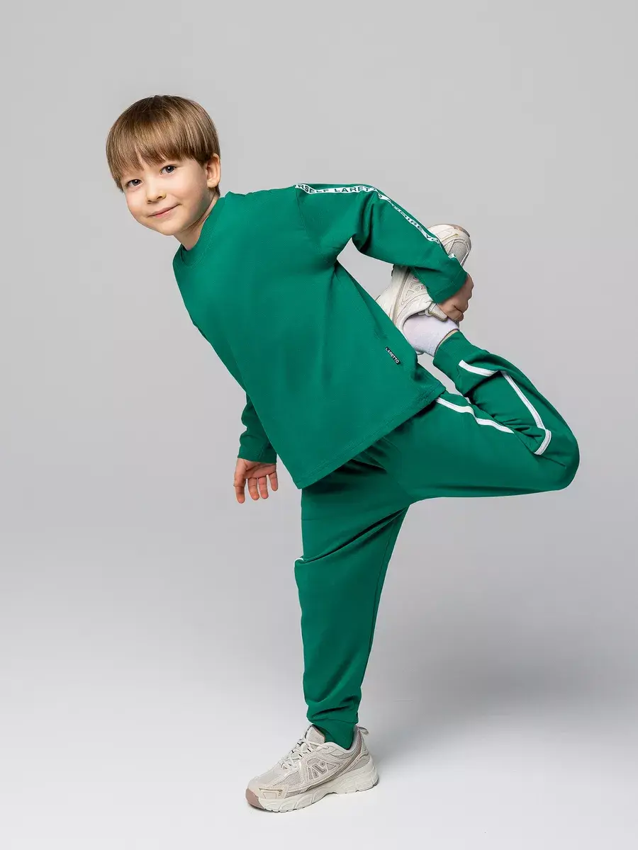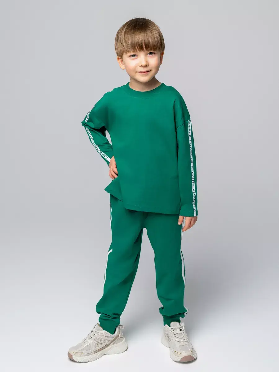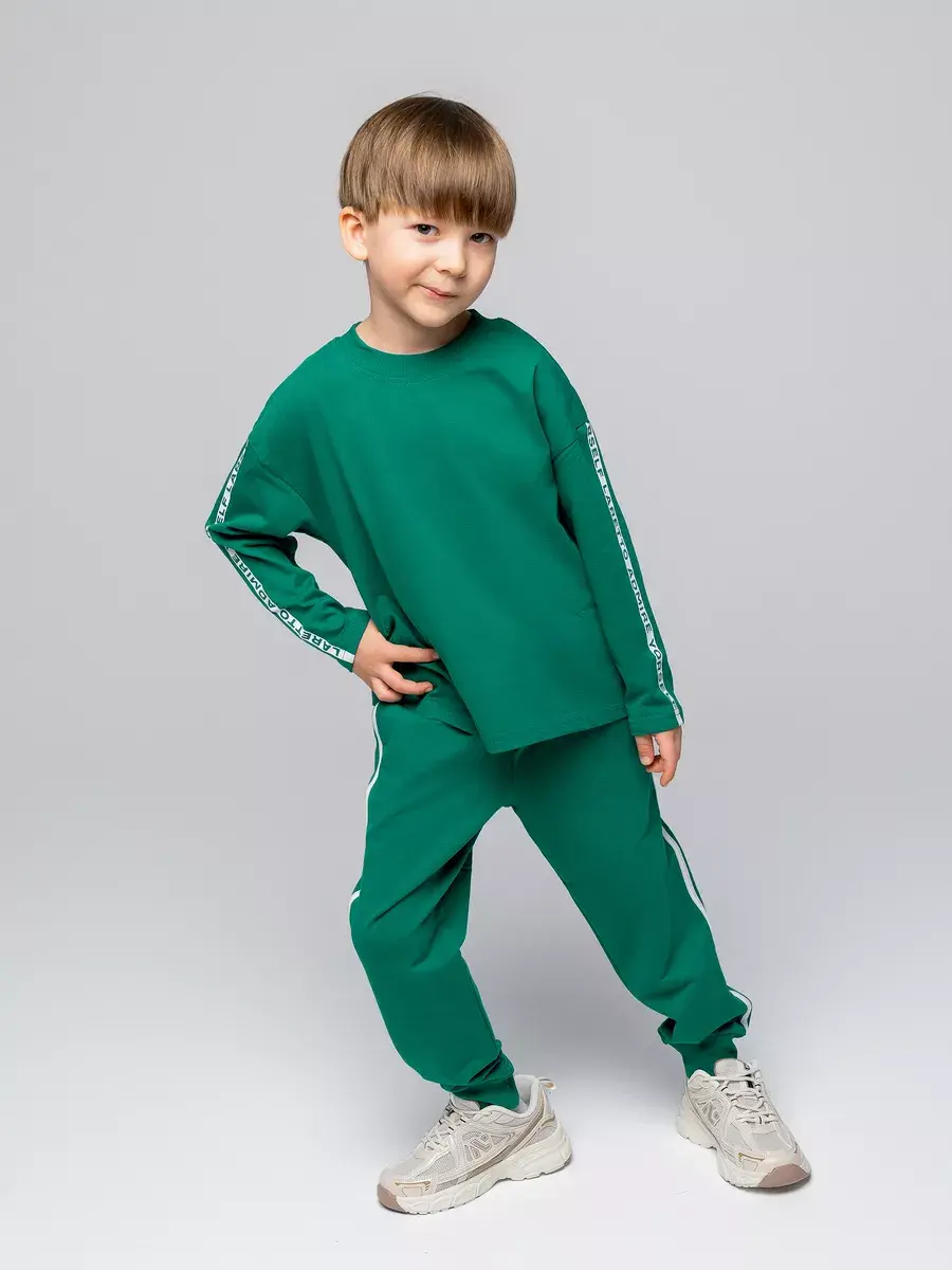 Детские брюки-джоггеры имеют эластичный пояс, что обеспечивает идеальную посадку и комфорт в течение всего дня. Их стильный дизайн с манжетами на щиколотках добавляет современный акцент в образ вашего мальчика. Костюм для мальчика доступен в различных цветах и размерах, что позволяет выбрать идеальный вариант для любого юного спортсмена.