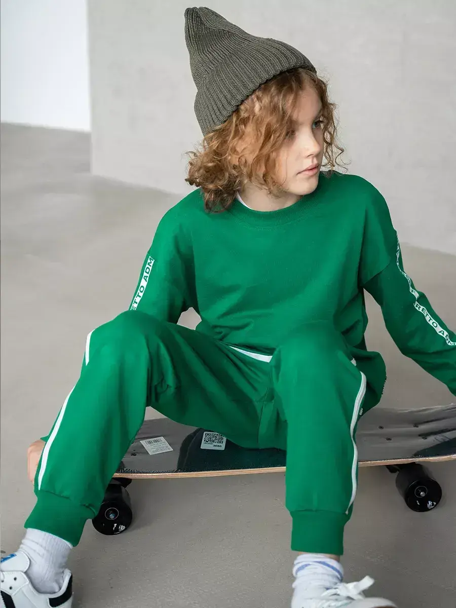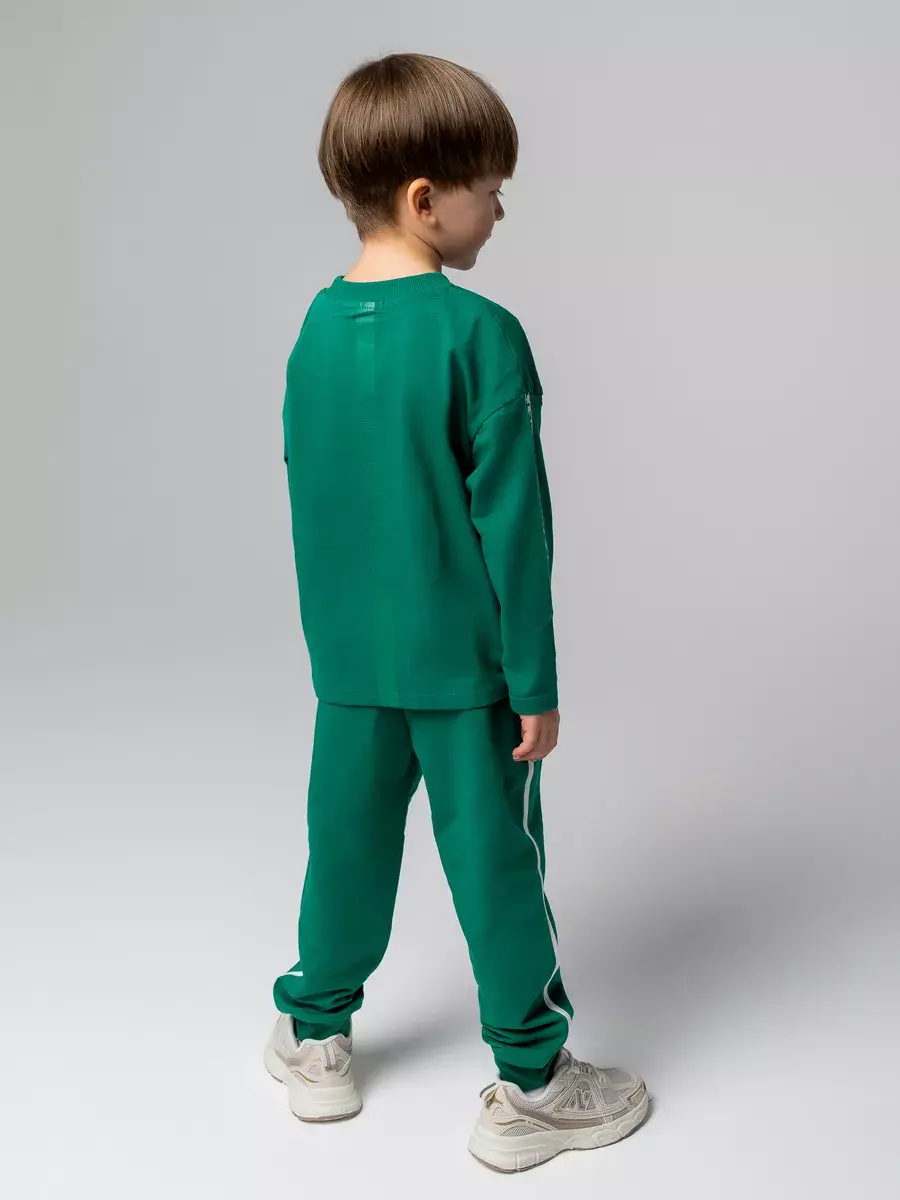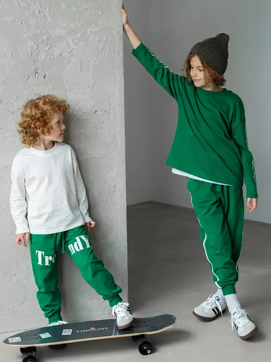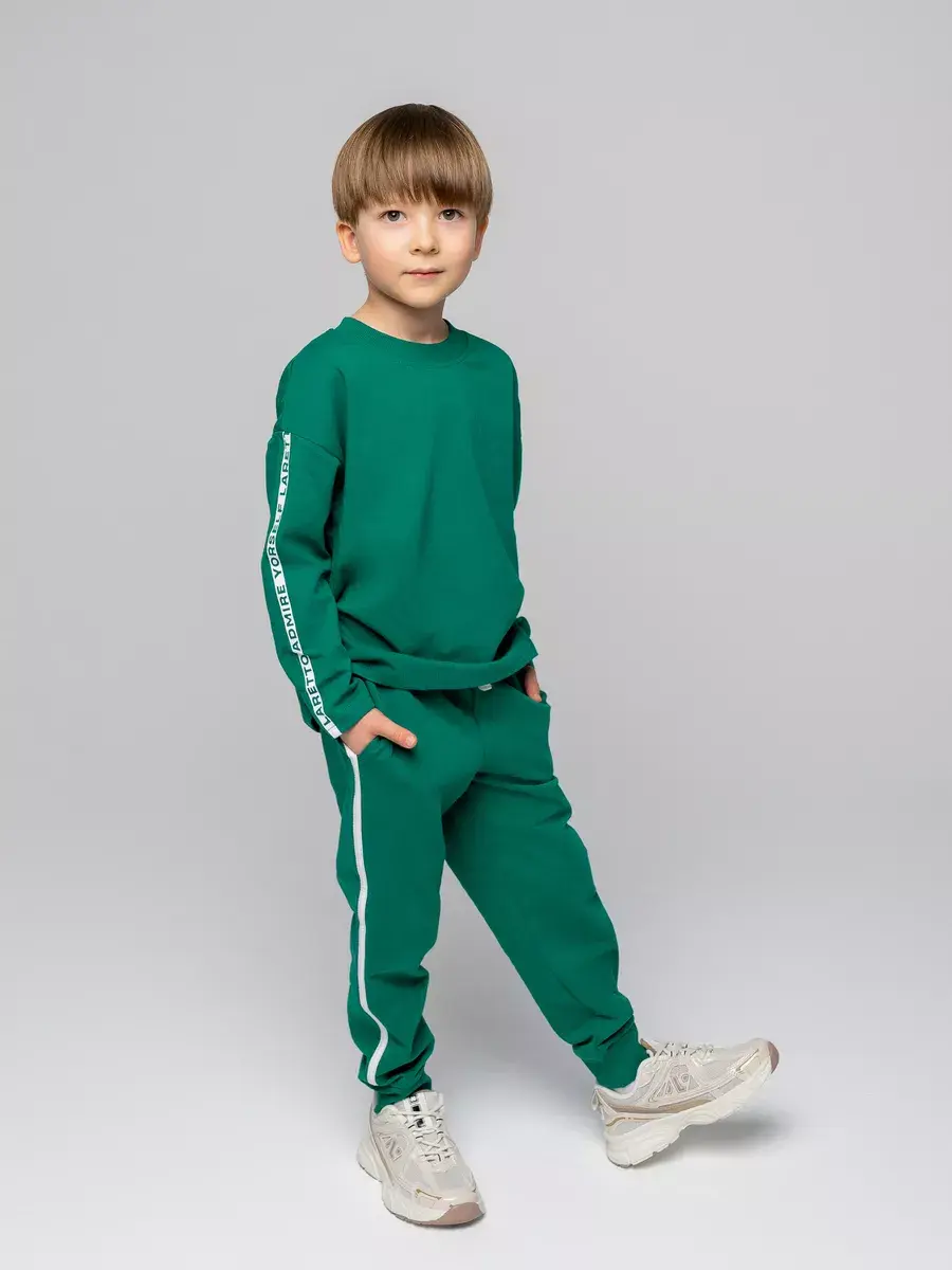 Детские брюки-джоггеры имеют эластичный пояс, что обеспечивает идеальную посадку и комфорт в течение всего дня. Их стильный дизайн с манжетами на щиколотках добавляет современный акцент в образ вашего мальчика. Костюм для мальчика доступен в различных цветах и размерах, что позволяет выбрать идеальный вариант для любого юного спортсмена.