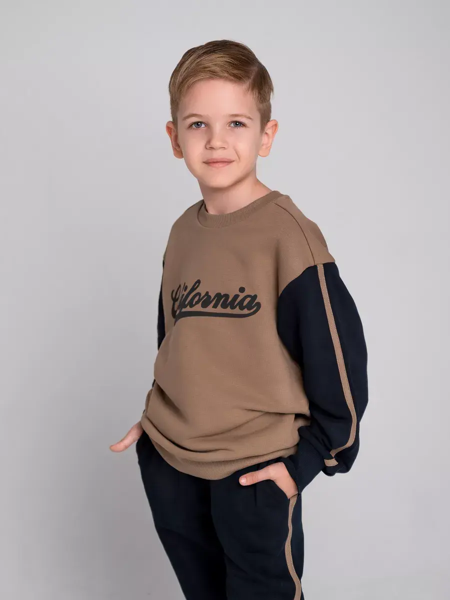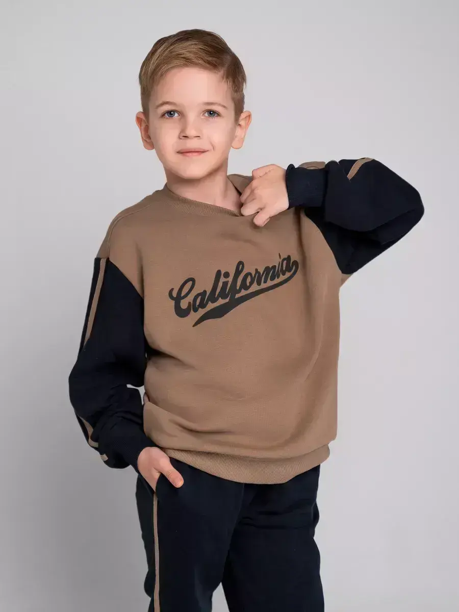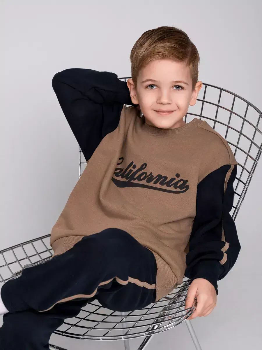 Костюм для мальчика — идеальное сочетание стиля и комфорта. Детский костюм состоит из уютного детского свитшота и брюк на резинке. Каждый элемент костюма создан с заботой о маленьких модниках, предпочитающих активный образ жизни.