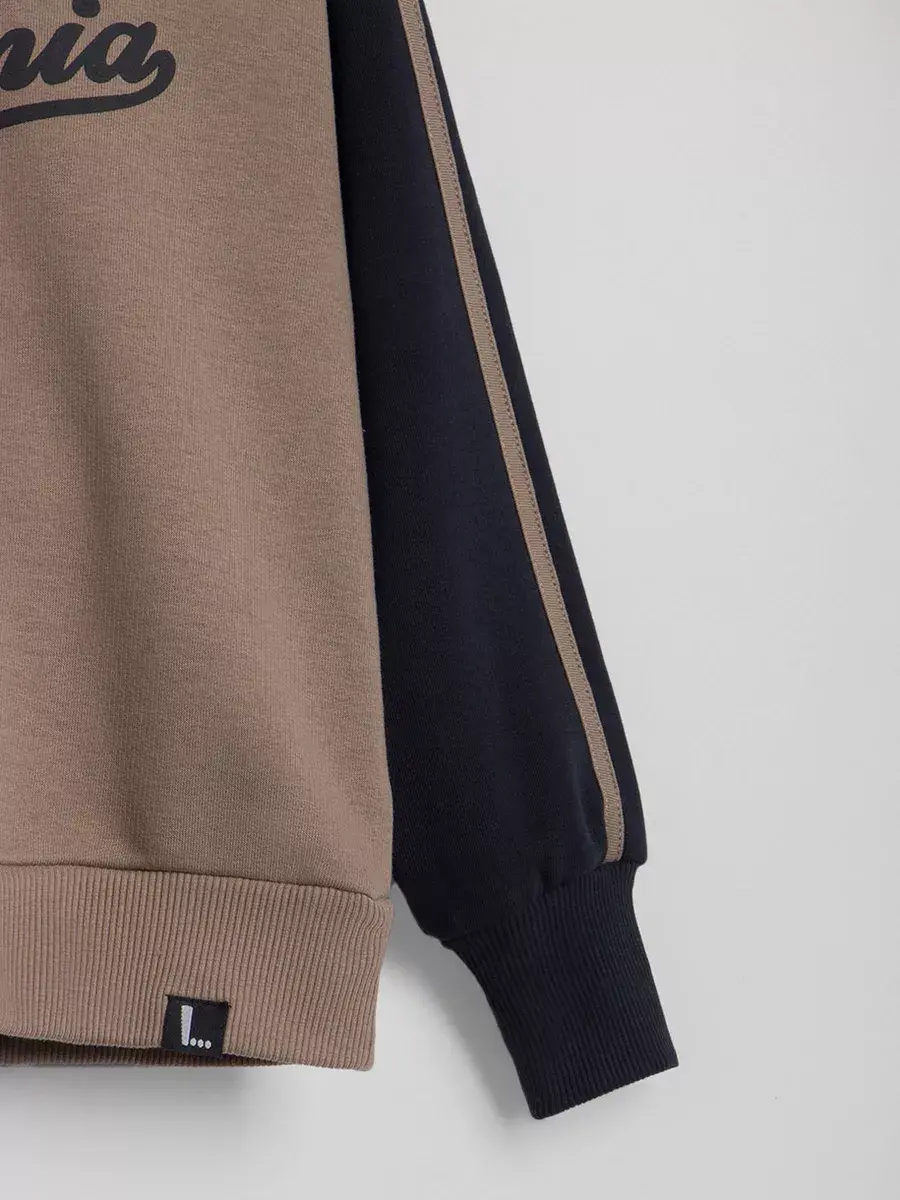 Свитшот для мальчика: Изготовлено из высококачественного материала, который обеспечивает тепло в прохладную погоду. Стильная детская кофта украшена ярким принтом и надписями, добавляя игривости в образ.