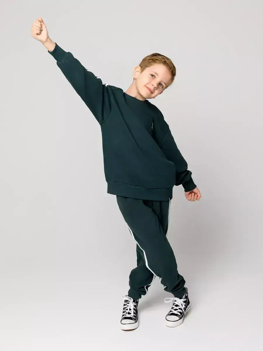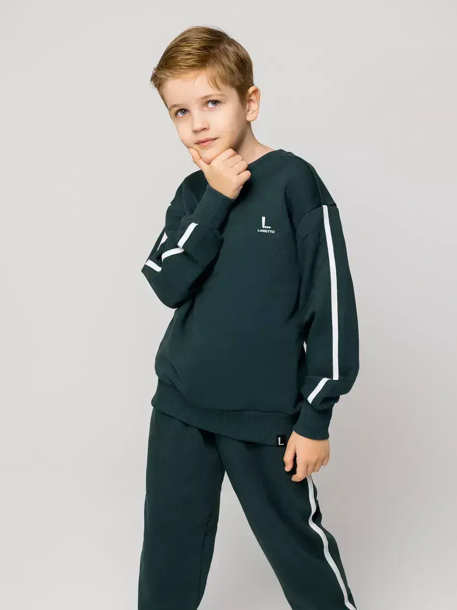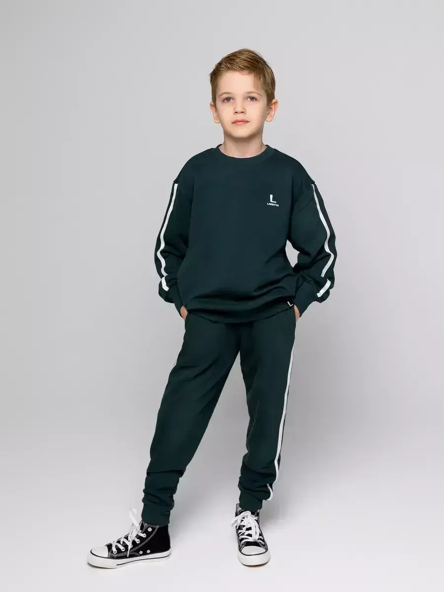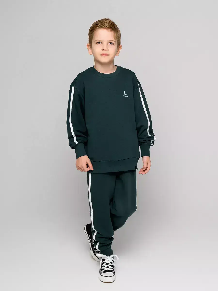 Спортивный костюм для мальчиков — идеальное сочетание стиля и комфорта. Детский костюм состоит из уютного детского свитшота и брюк на резинке. Каждый элемент костюма создан с заботой о маленьких модниках, предпочитающих активный образ жизни.