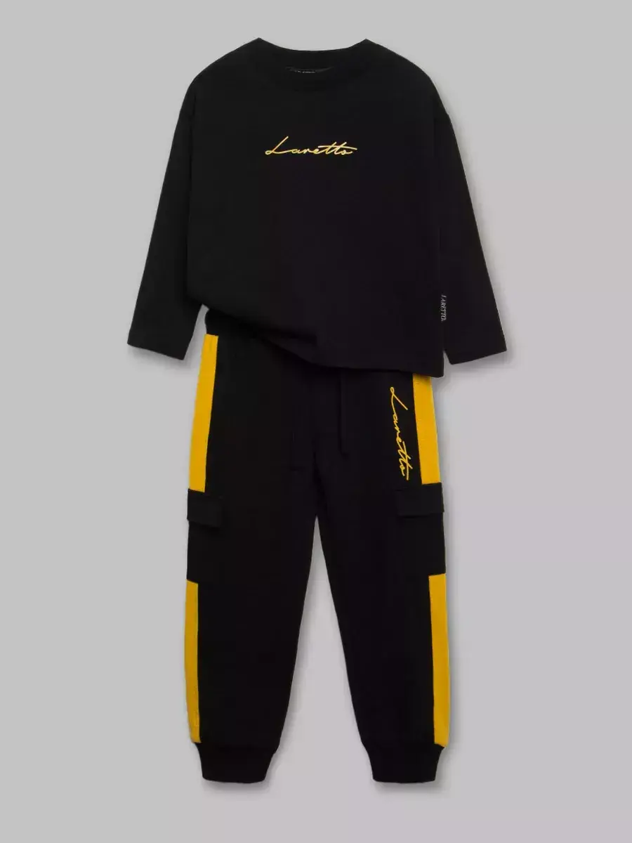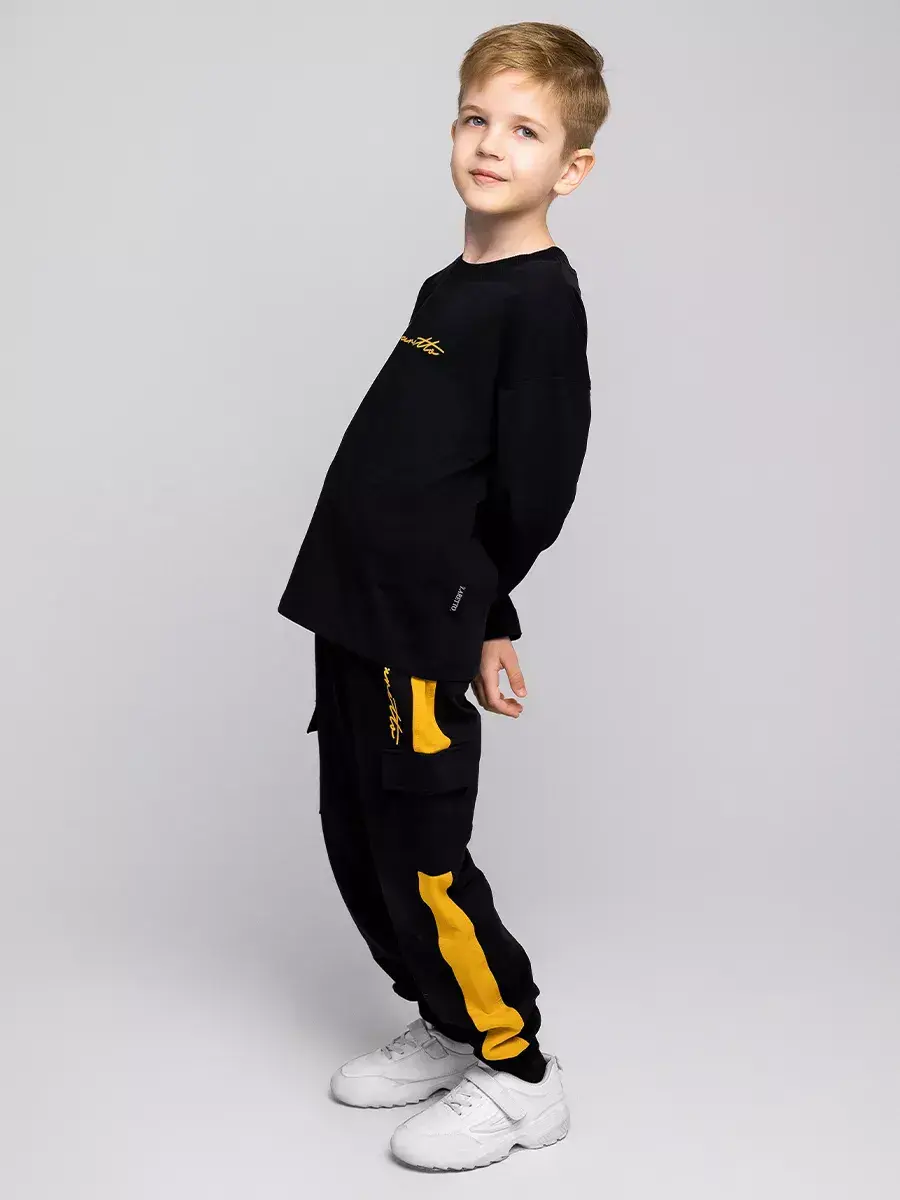 Детские брюки-джоггеры имеют эластичный пояс, что обеспечивает идеальную посадку и комфорт в течение всего дня. Их стильный дизайн с манжетами на щиколотках добавляет современный акцент в образ вашего мальчика. Костюм для мальчика доступен в различных цветах и размерах, что позволяет выбрать идеальный вариант для любого юного спортсмена.