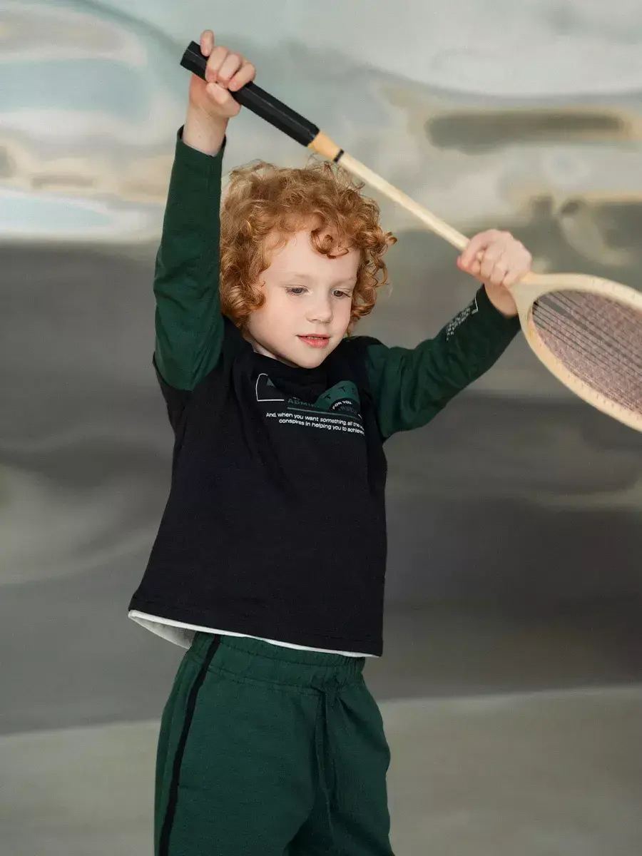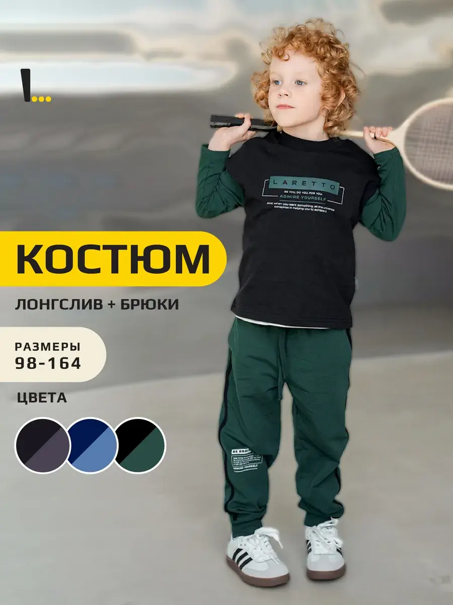 Представляем стильный осенний спортивный костюм для мальчика, который идеально сочетает в себе комфорт и функциональность! Cпортивный костюм в школу для мальчика включает в себя модный лонгслив для мальчика и удобные трикотажные брюки-джоггеры, обеспечивающие свободу движений во время активных игр и занятий спортом. Лонгслив для детей выполнен из мягкого дышащего материала, который отлично сохраняет тепло, а также позволяет коже дышать, что делает его идеальным для прохладной погоды.