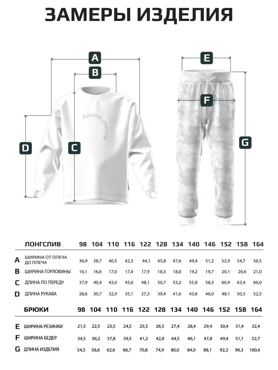 Состоящий из лонгслива и джоггеров с эластичным поясом и манжетами, этот комплект обеспечивает свободу движений и комфортную посадку на теле ребенка. Спортивный костюм подойдет для ношения мальчикам и девочкам в повседневной жизни, а также может быть использован как школьная спортивная форма или для праздничных мероприятий.