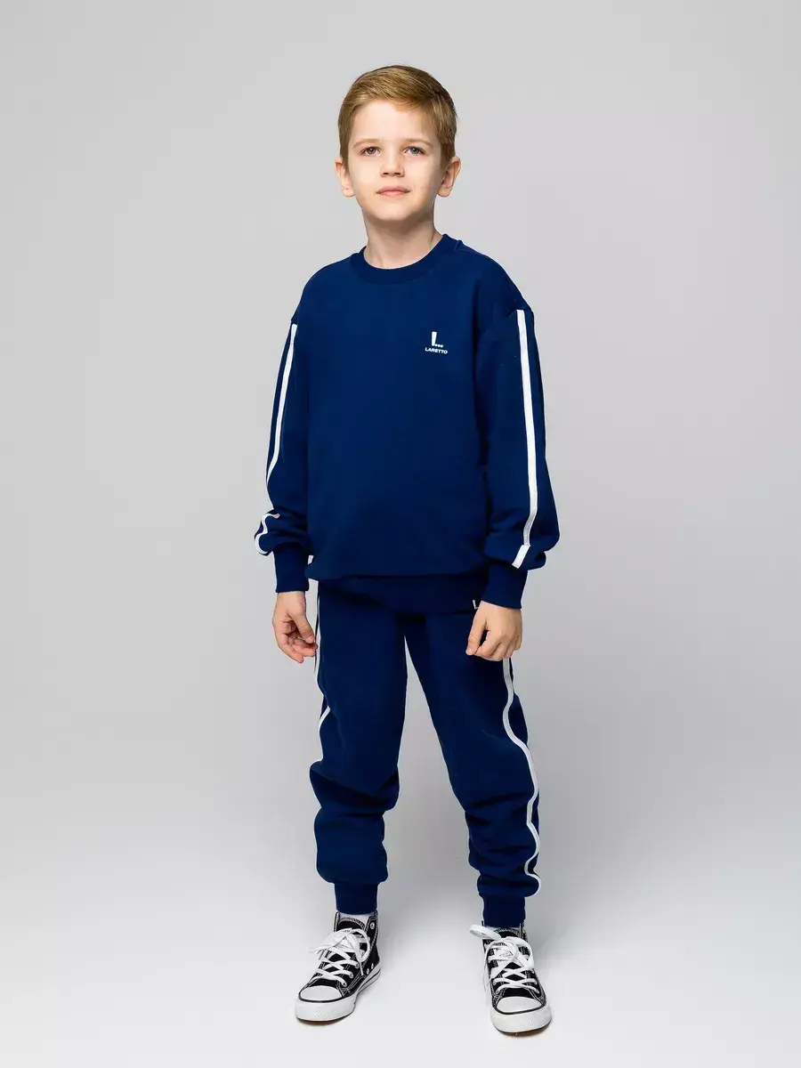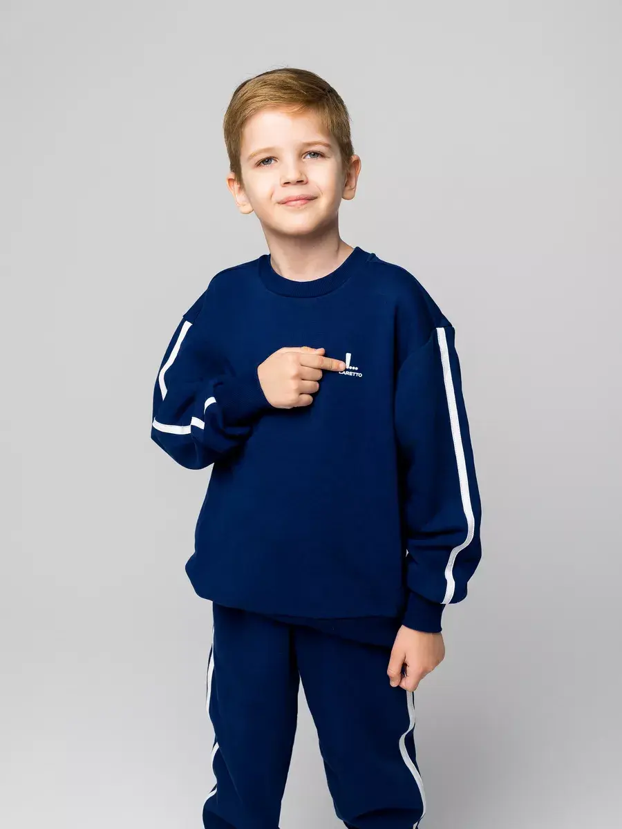 Спортивный костюм для мальчиков — идеальное сочетание стиля и комфорта. Детский костюм состоит из уютного детского свитшота и брюк на резинке. Каждый элемент костюма создан с заботой о маленьких модниках, предпочитающих активный образ жизни.