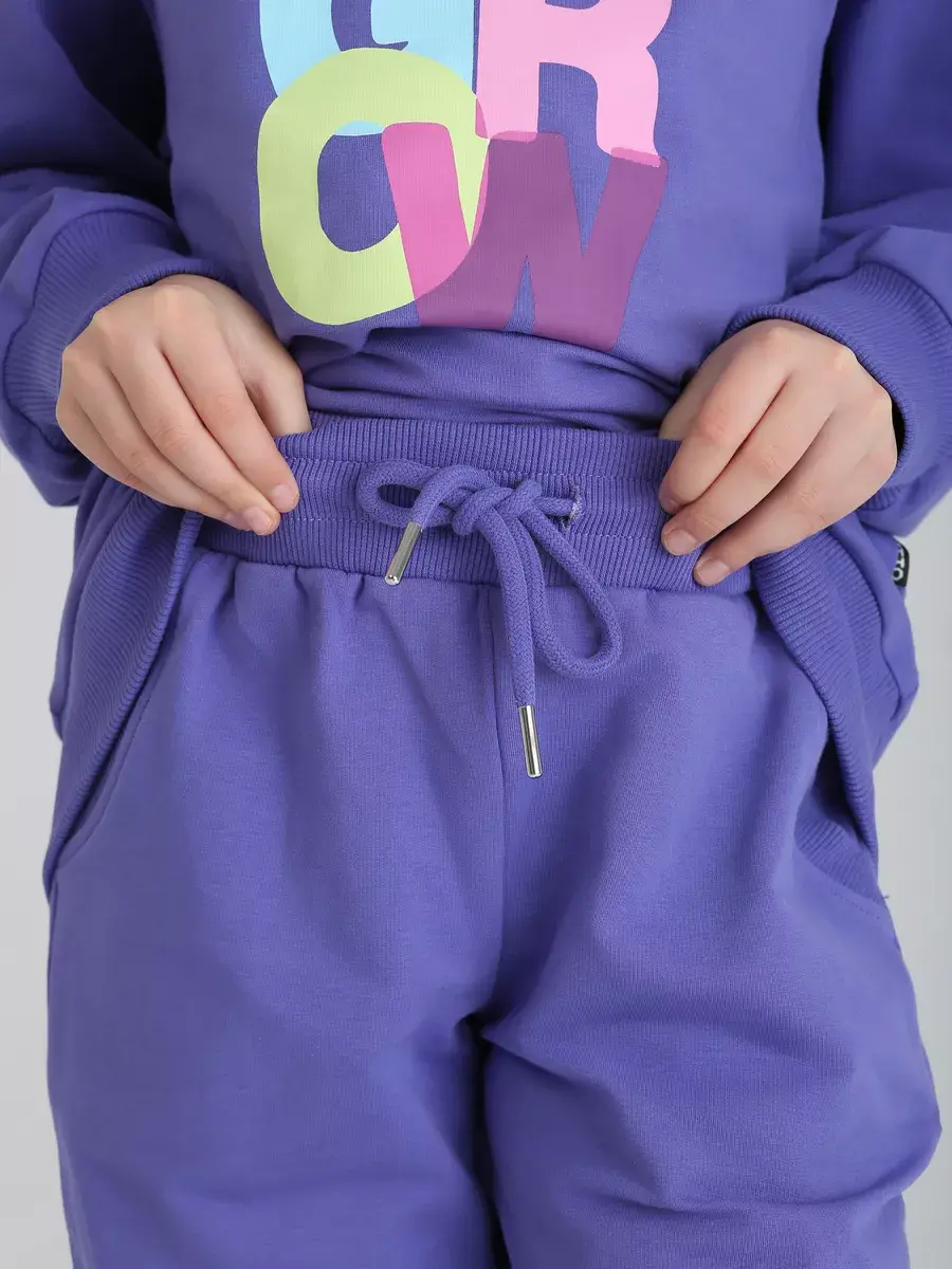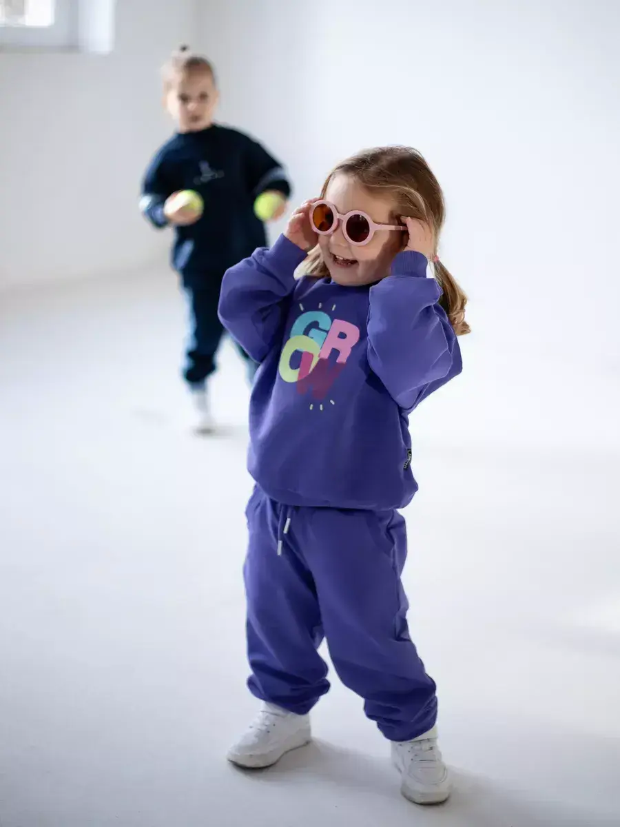 Спортивный костюм для девочек, который сочетает в себе стиль, комфорт и качество. Этот трикотажный детский костюм состоит из удобного лонгслива и модных джоггеров, которые подарят вашей малышке свободу движений в прохладные осенние дни.