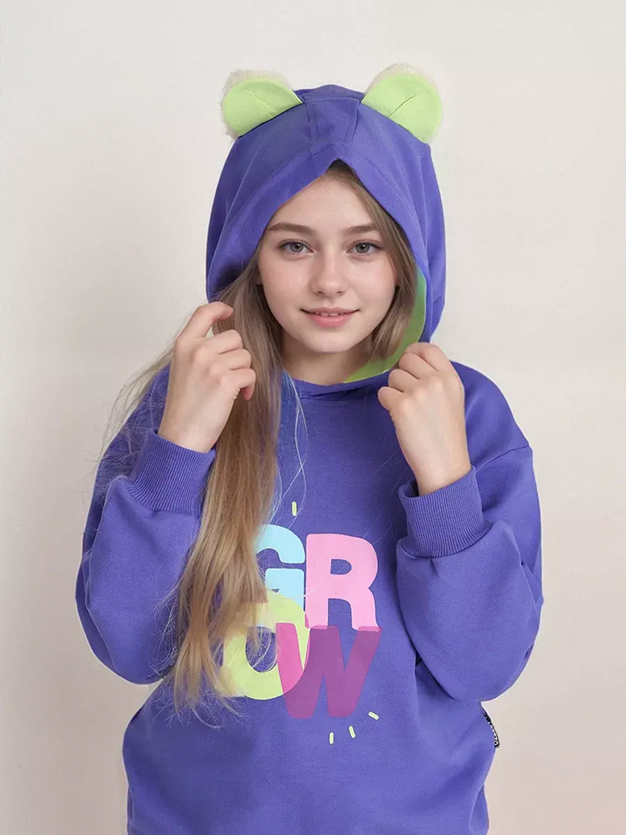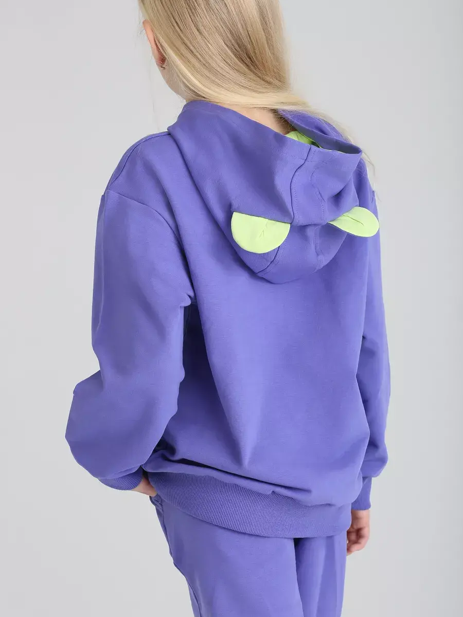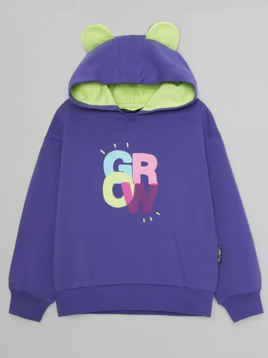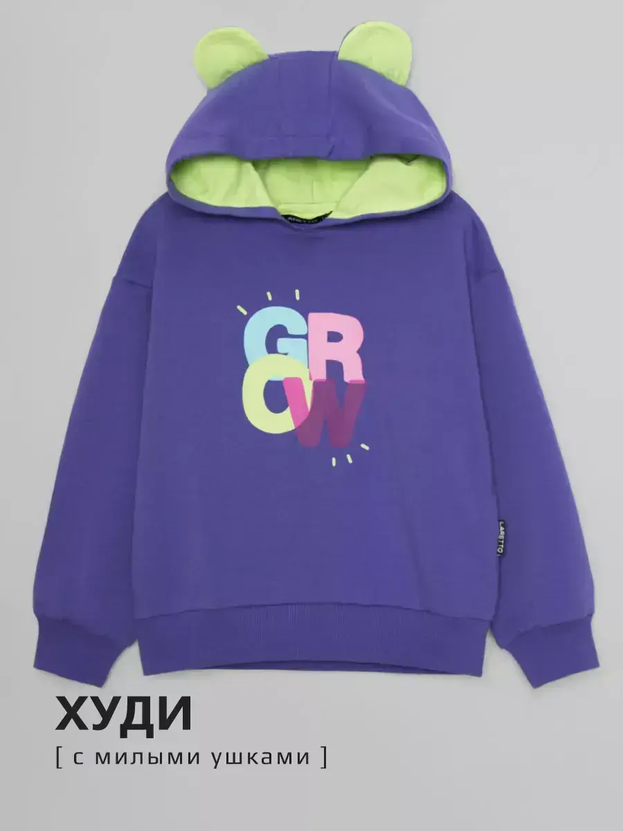 Толстовка для девочки - изготовлена из высококачественного хлопка, который обеспечивает максимальный комфорт и долговечность. Мягкий на ощупь материал не вызывает раздражения кожи и позволяет телу “дышать”, что особенно важно для активных детей. Дизайн детского худи для девочки предусматривает удлиненную посадку и рукава на манжетах, что добавляет изделию стильности и практичности.