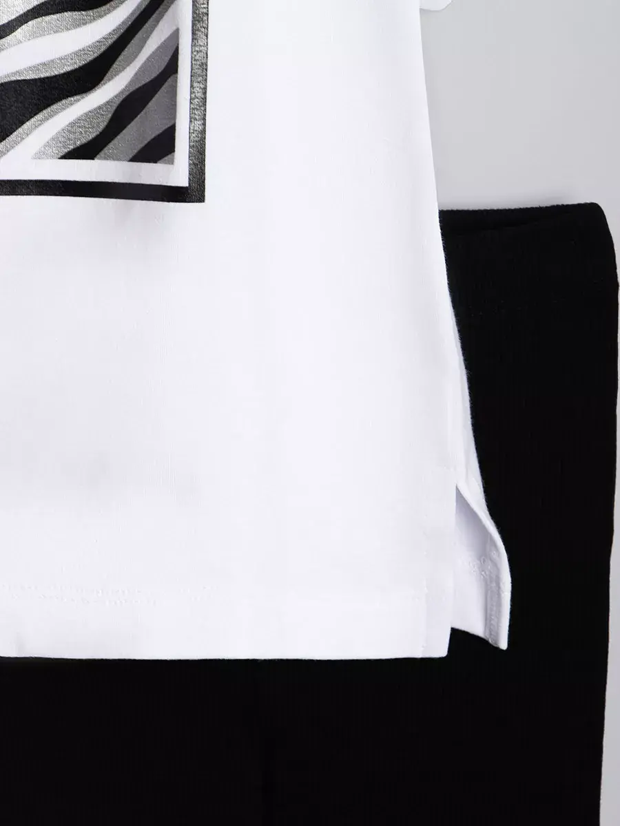Детский костюм отлично подходит для прогулок и активных игр на свежем воздухе. В спортивном комплекте для девочек можно заниматься спортом и физкультурой. Также идеально подходит для занятий танцами! Современный принт делает футболку и шорты для девочек идеальным выбором для стильных модниц. Детские бриджи легко комбинируются с различными верхами, что позволяет создавать множество модных образов.