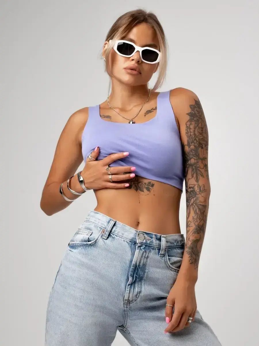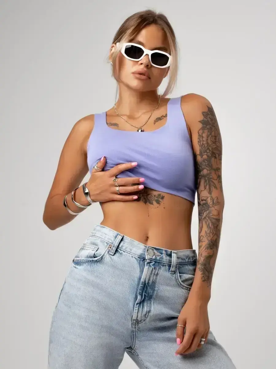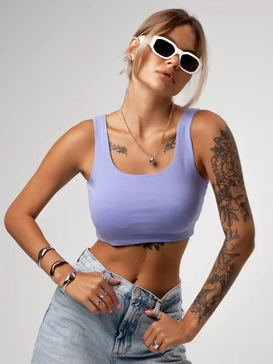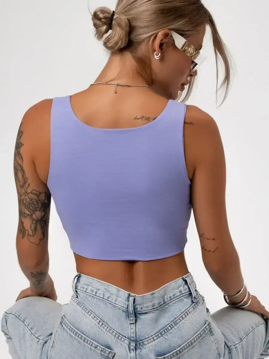 Этот универсальный и стильный кроп-топ выполнен из качественного хлопка и идеально подходит для жаркого лета. Практичный и модный выбор для женщин и подростков, идеально сочетающийся с любыми летними нарядами. Отлично может списаться даже в осенний образ, если надеть топ с пиджаком. Классический фиолетовый оттенок делает топ универсальным, подходящим для любых случаев – от повседневной носки до вечерних выходов. Изготовлен из натурального хлопка, что гарантирует комфорт и отличную посадку на протяжении всего дня. Двухслойная конструкция добавляет элемент стиля, а также обеспечивает дополнительный комфорт и поддержку. Идеально подходит под пиджак или жакет для создания делового стиля, а также в комбинации с джинсами или юбками для создания повседневного образа.Этот кроп-топ станет отличным выбором для летних прогулок, вечеринок или любой другой активности на свежем воздухе. Современный дизайн и комфортная посадка позволяют чувствовать себя уверенно и стильно в любое время.Не упустите возможность добавить этот стильный черный топ в свой гардероб! Закажите сейчас и станьте обладательницей идеального летнего образа!