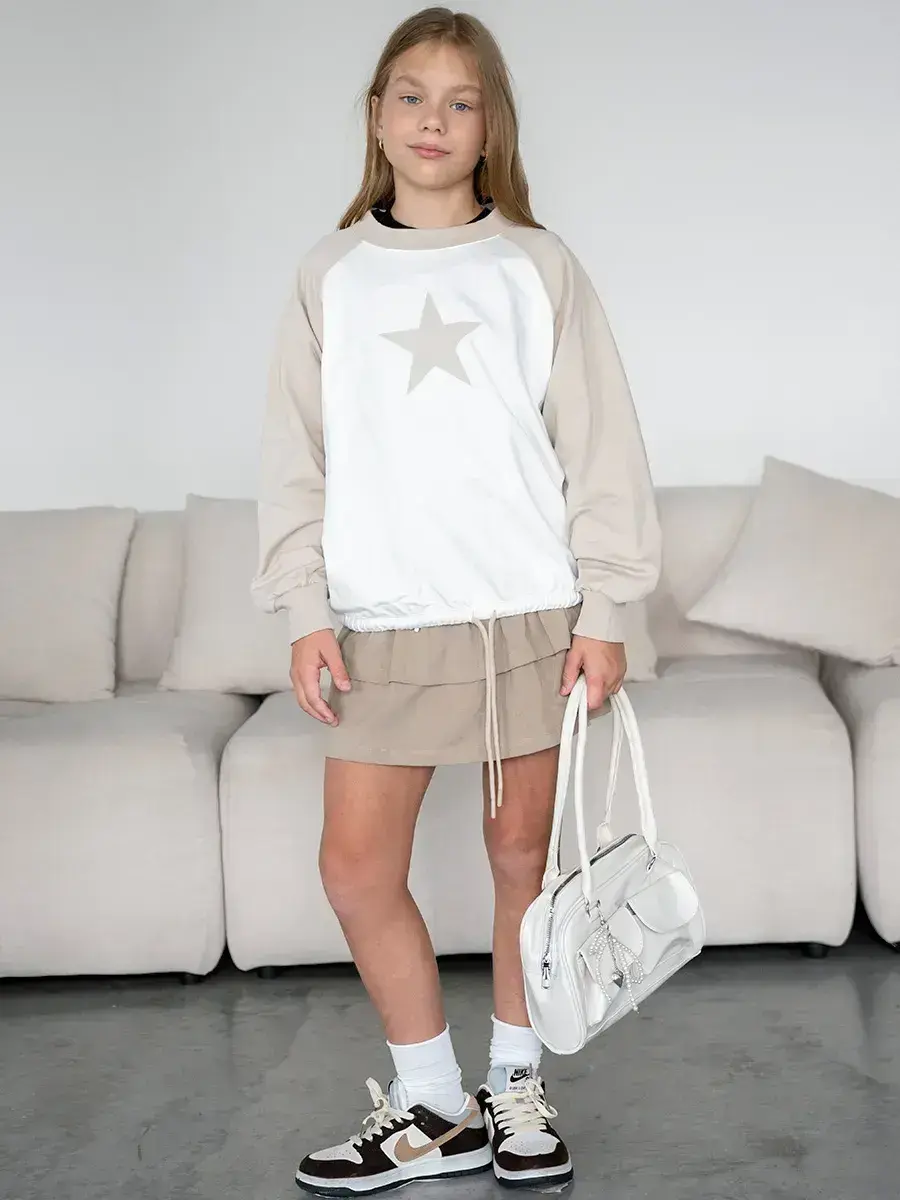 Представляем вам стильный и уютный свитшот для девочки от бренда LARETTO, который станет идеальным выбором для школы и повседневной носки. Этот свитшот выполнен из мягкого и приятного к телу хлопка с добавлением эластана, что обеспечивает комфорт и свободу движений. Модель выполнена в трендовом оверсайз стиле, который так популярен среди подростков. Свитшот украшен интересным принтом, который точно понравится юным модницам. Завязки на капюшоне добавляют практичности и стиля, а бежевый цвет легко сочетается с любыми другими оттенками. Этот свитшот станет отличным дополнением к школьной форме или casual look. Он подарит тепло и комфорт в прохладные осенние дни, а яркий принт добавит настроения и индивидуальности. LARETTO заботится о качестве своих изделий, поэтому свитшот легко стирается при температуре не более 30°C. Порадуйте свою девочку стильным и удобным свитшотом LARETTO!