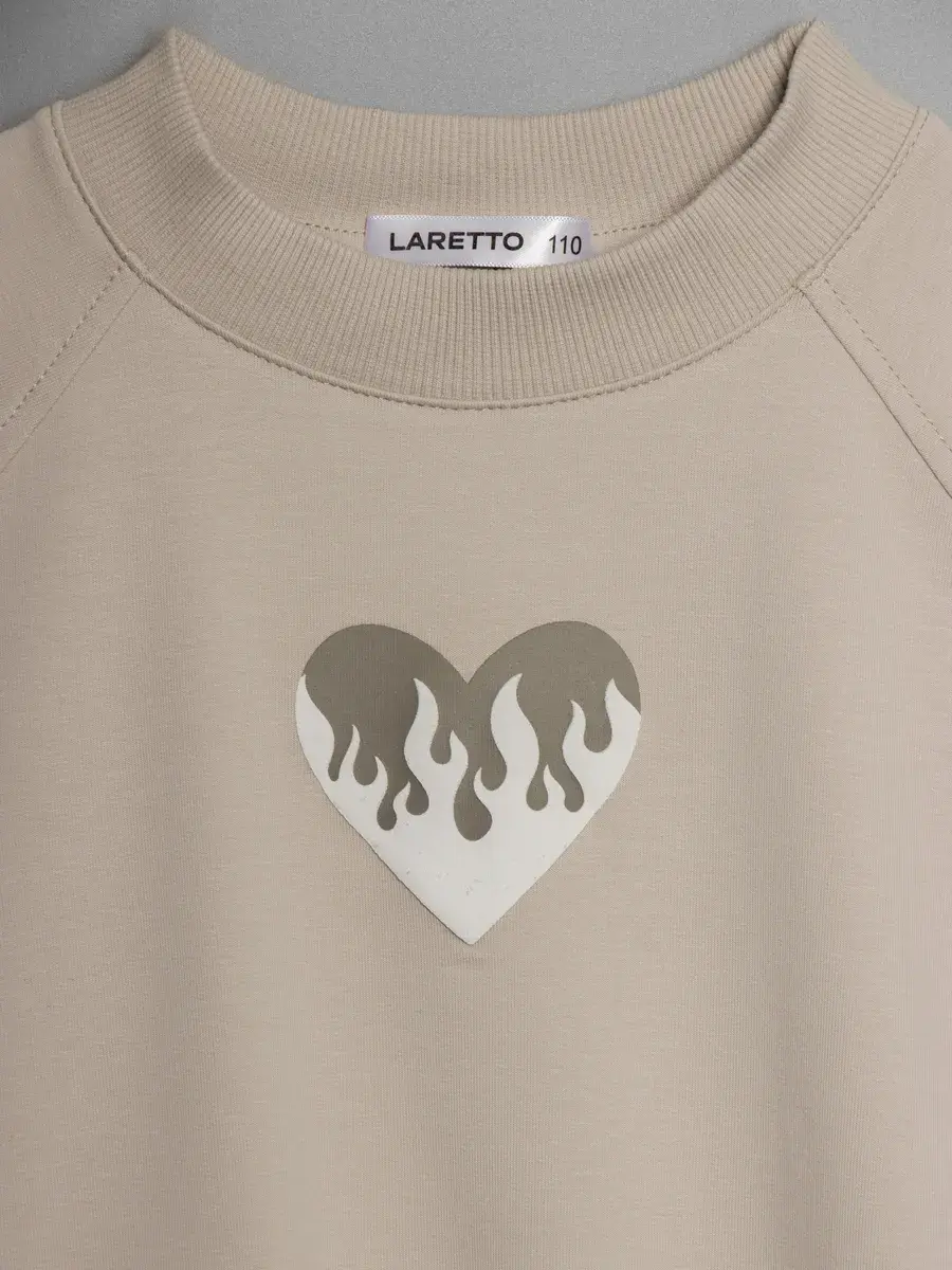 Представляем вам стильный и уютный свитшот для девочки от LARETTO, который станет идеальным выбором для школы и повседневной носки. Этот свитшот выполнен из мягкого и приятного к телу хлопка с добавлением эластана, что обеспечивает комфорт и свободу движений. Модель выполнена в трендовом оверсайз стиле, который так популярен среди подростков. Свитшот бежевого цвета с милым принтом в виде сердечка добавит нотку нежности и романтичности любому образу. Завязки на капюшоне позволят регулировать его посадку и создать индивидуальный стиль. Этот свитшот станет любимой вещью вашей дочери, ведь он не только стильный, но и очень удобный. Представьте, как ваша девочка с удовольствием будет надевать его в школу, на прогулки с друзьями или просто для комфортного отдыха дома. LARETTO заботится о качестве и комфорте, поэтому этот свитшот станет отличным выбором для вашего ребенка.
