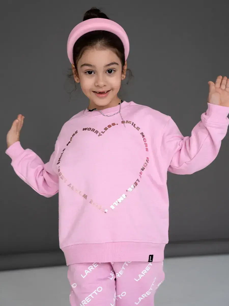 Свитшот для девочки с принтом сердечко – идеальный выбор для стильных и уютных образов!
