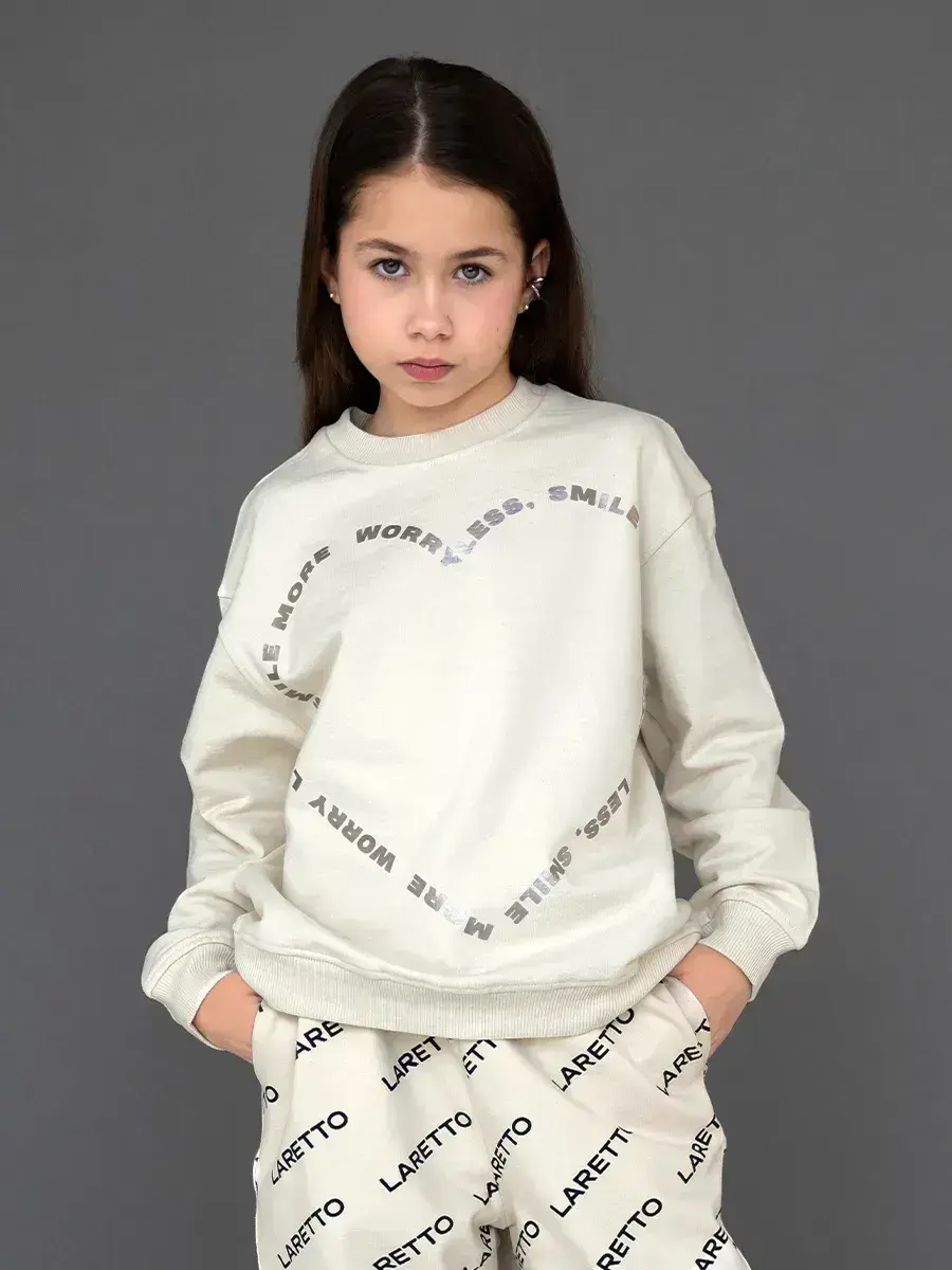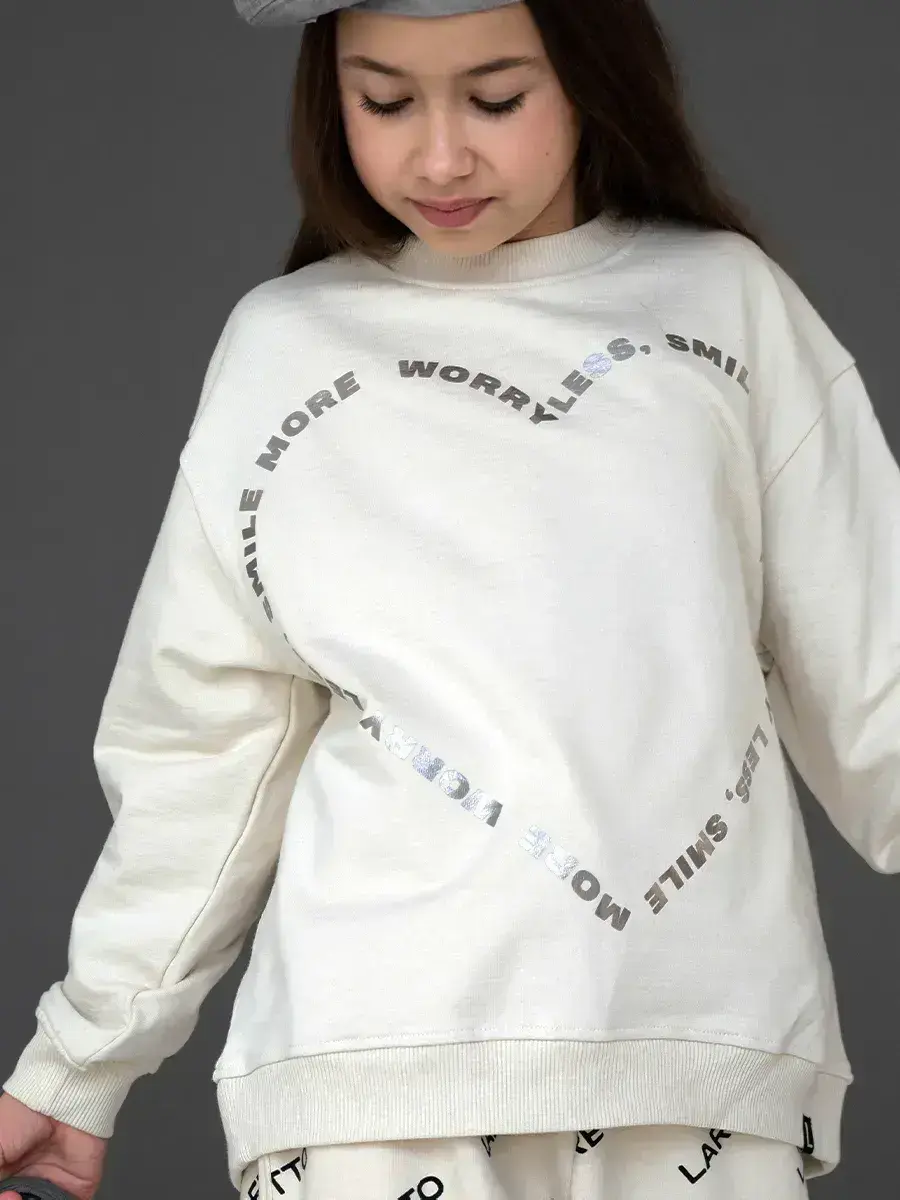 Свитшот для девочки с принтом сердечко – идеальный выбор для стильных и уютных образов!