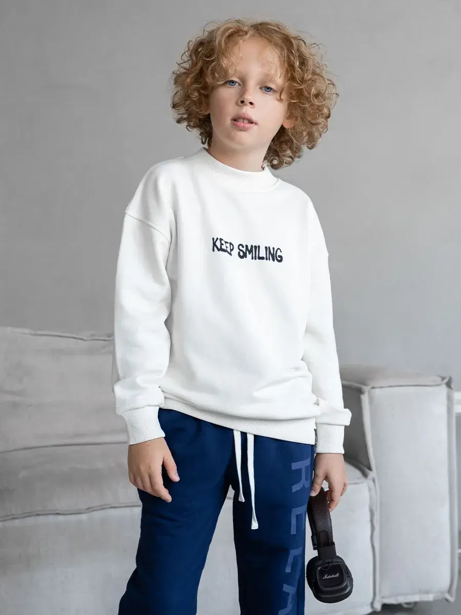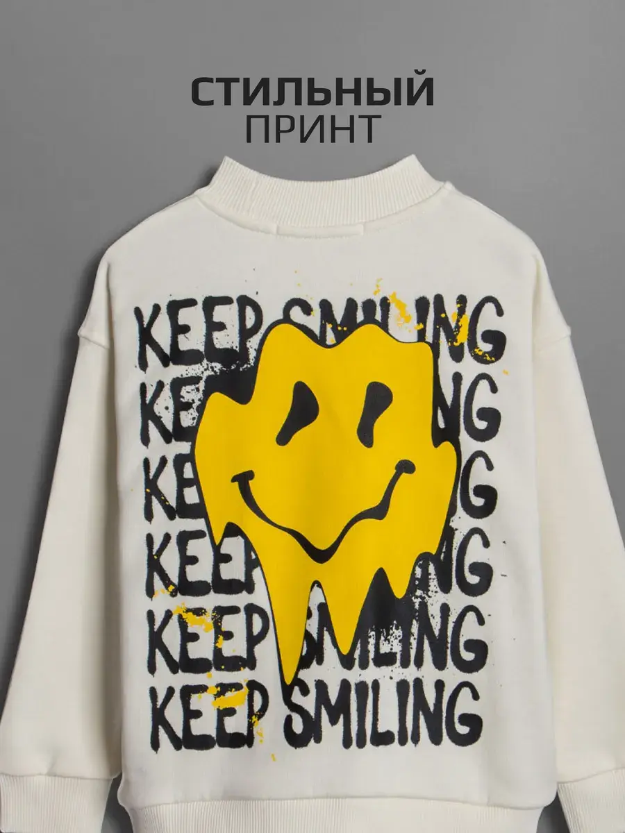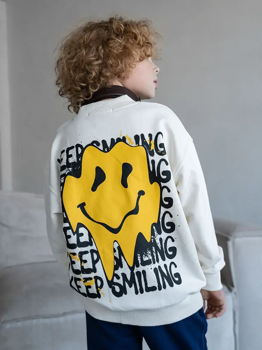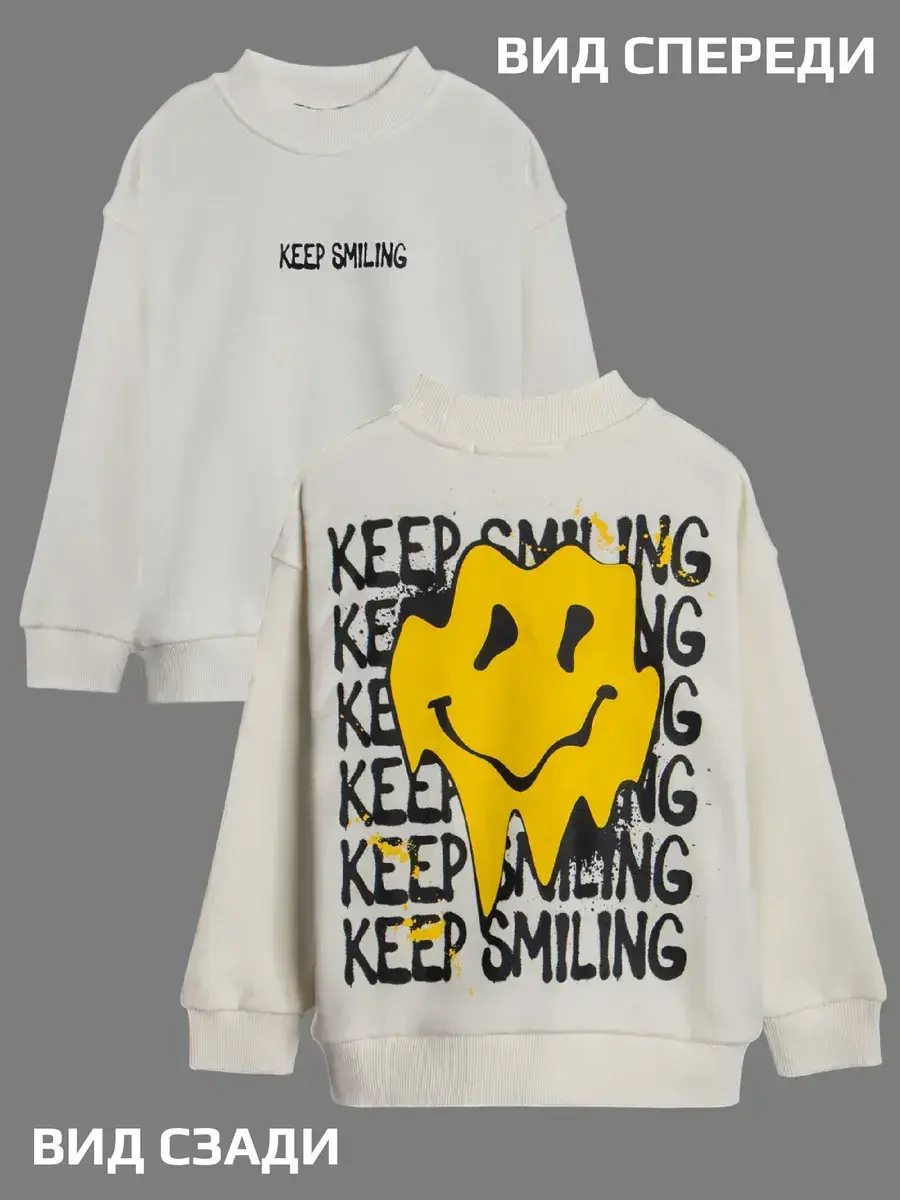 Этот свитшот для мальчика дополнен оригинальным принтом в виде смайлика, который добавляет образу яркость и настроение. Универсальный дизайн школьного свитшота позволяет легко сочетать его с разными элементами гардероба, делая его отличным выбором для подростков.