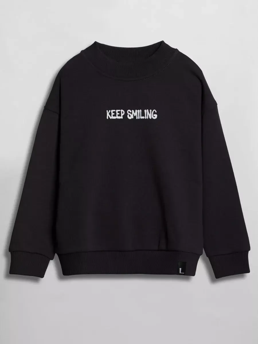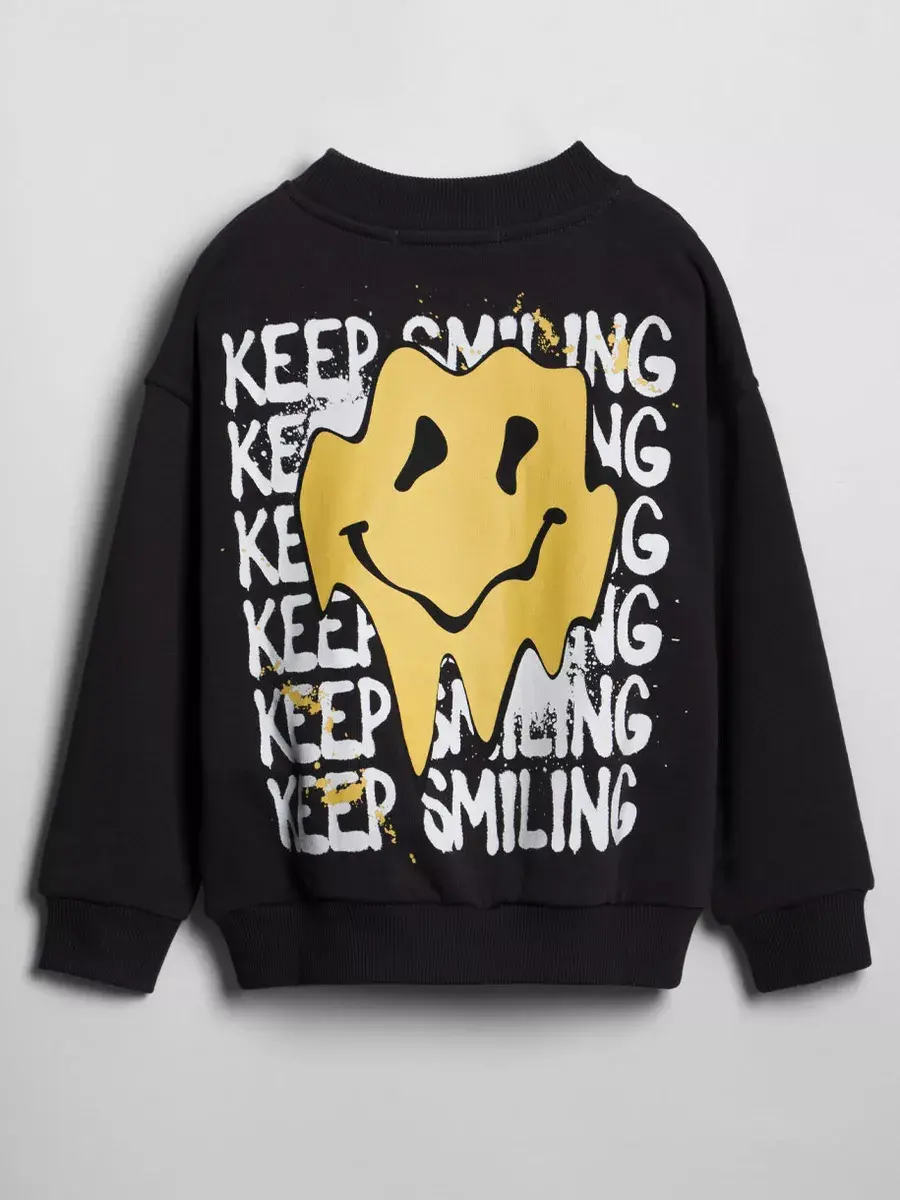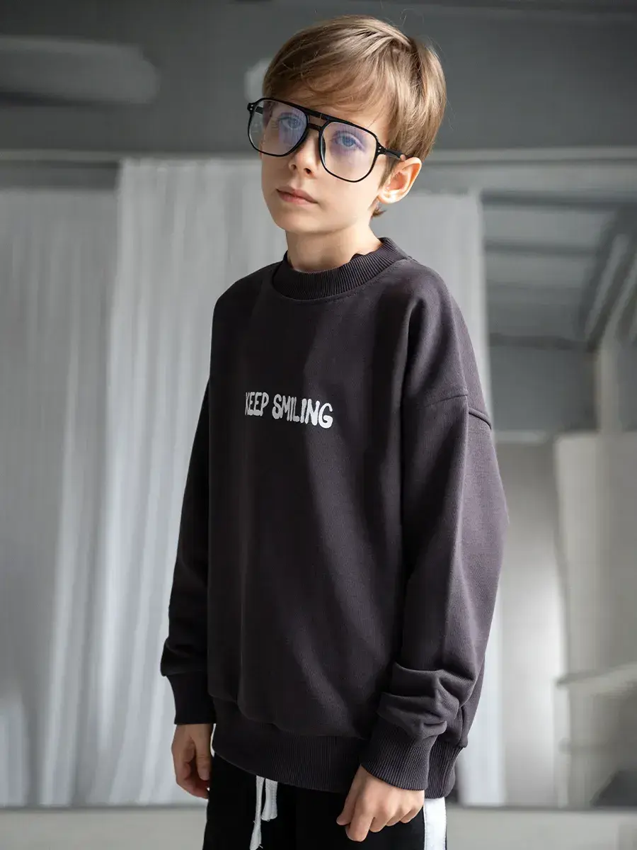 Этот свитшот для мальчика дополнен оригинальным принтом в виде смайлика, который добавляет образу яркость и настроение. Универсальный дизайн школьного свитшота позволяет легко сочетать его с разными элементами гардероба, делая его отличным выбором для подростков.
