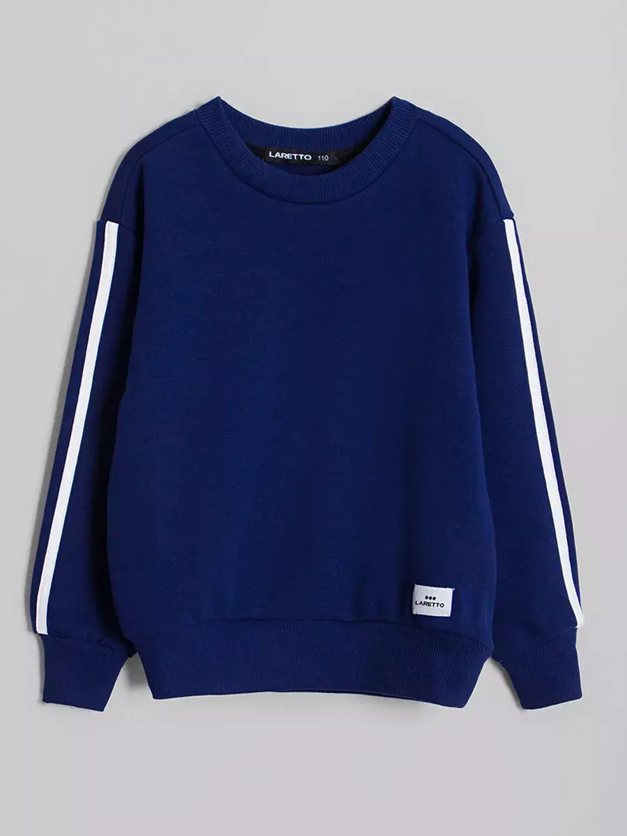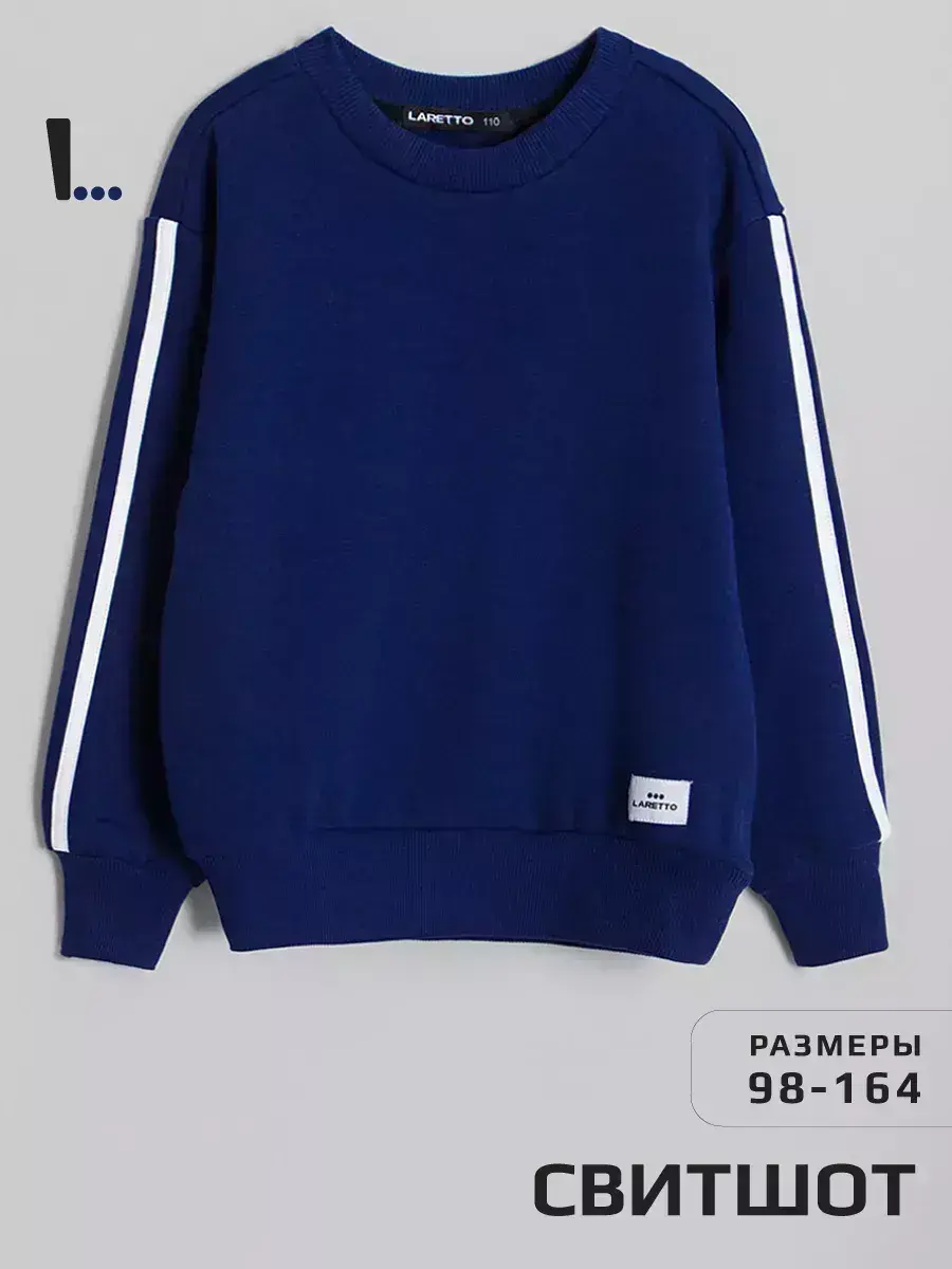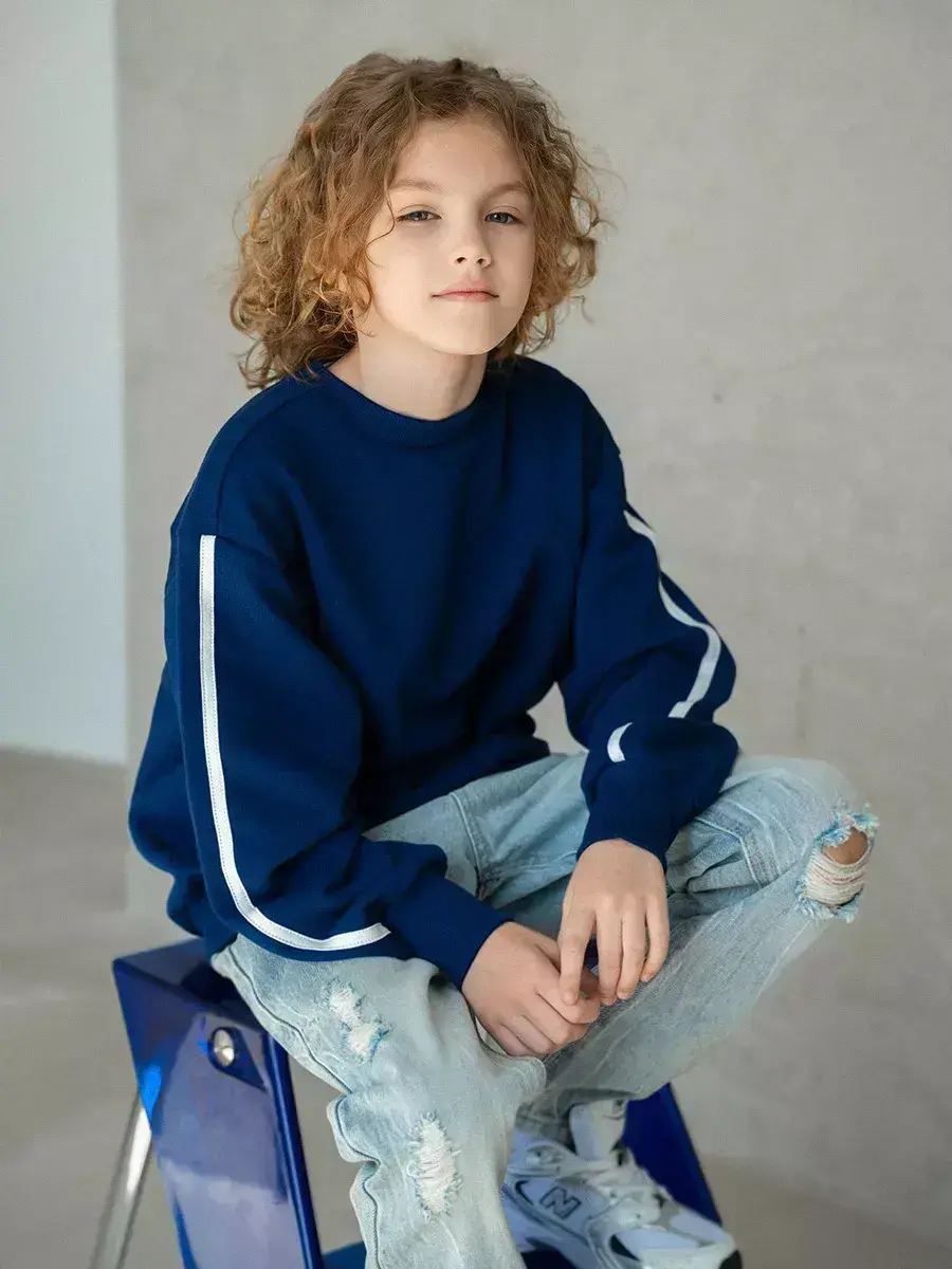 Лаконичный дизайн с нашивкой и полосками на рукавах легко комбинируется с любым низом, создавая стильные и современные образы. Свитшот для мальчика отлично подходит для школы, прогулок, активного отдыха и особых случаев. Он подчеркнет молодежный и спортивный стиль, обеспечивая свободу движений и удобство в носке.