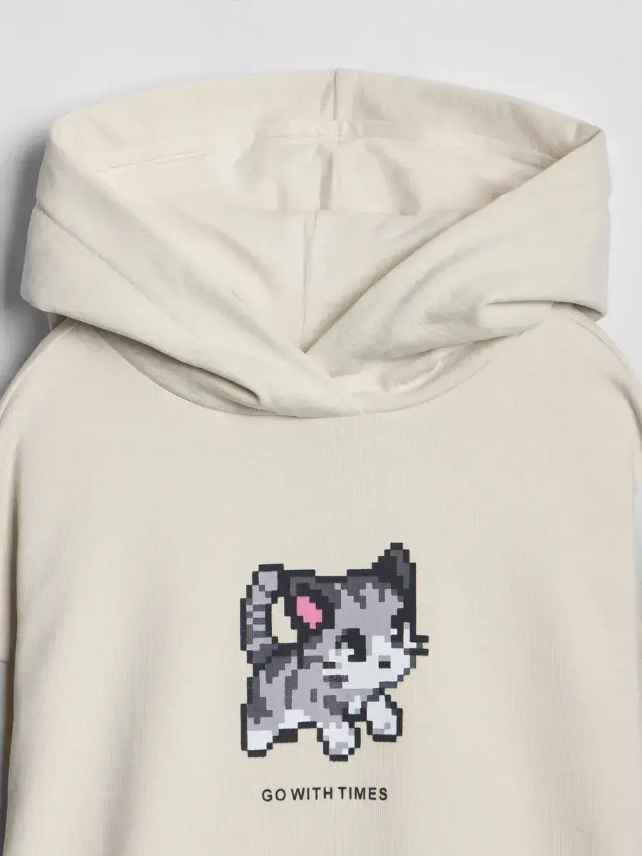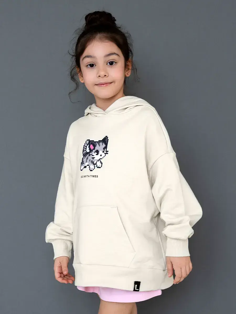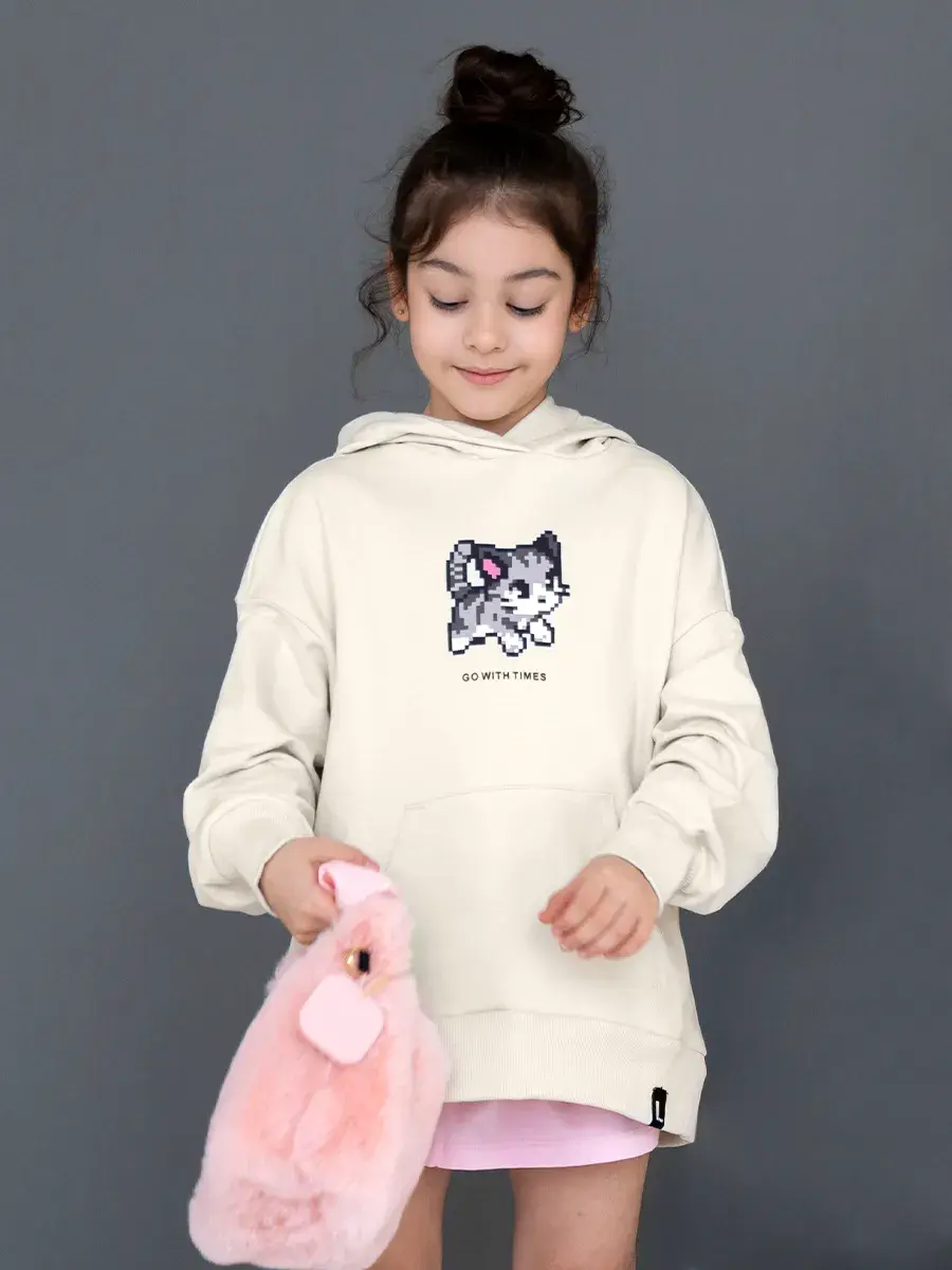 Стильная и удобная школьная толстовка для девочки станет отличным дополнением гардероба как для повседневного использования, так и для занятий в детском саду или активных прогулок. Наша толстовка для девочки украшена милым принтом в виде котика, который придает наряду уникальный стиль и идеально подходит для современных модниц. Практичный карман спереди позволяет хранить мелкие вещи или согревать руки, а капюшон защищает от ветра и холода.