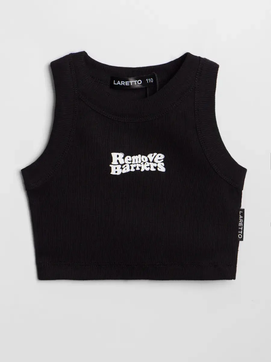 Топ для девочки в стиле y2k легко сочетается с шортами, юбками или брюками, создавая разнообразные образы. Черный укороченный топ для девочки станет универсальным и удобным дополнением гардероба вашей девочки. Он идеально подходит для теплых дней, активных игр и создания стильных образов в любое время.